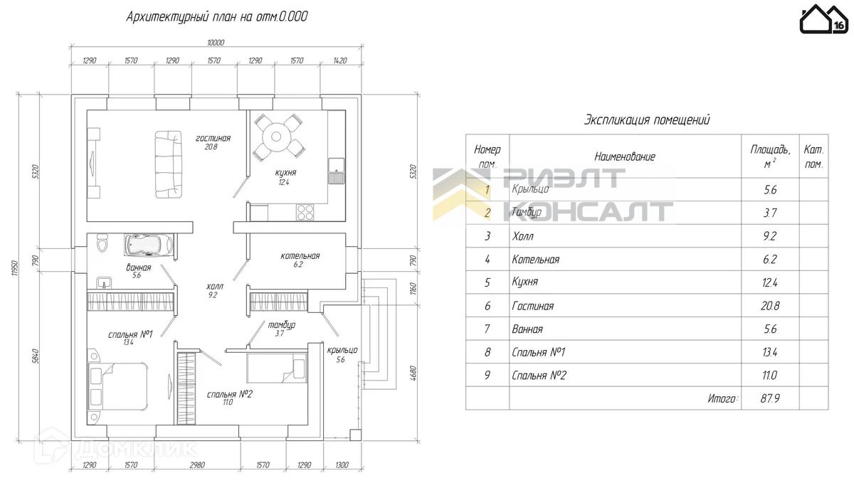 Общая площадь 88 м2