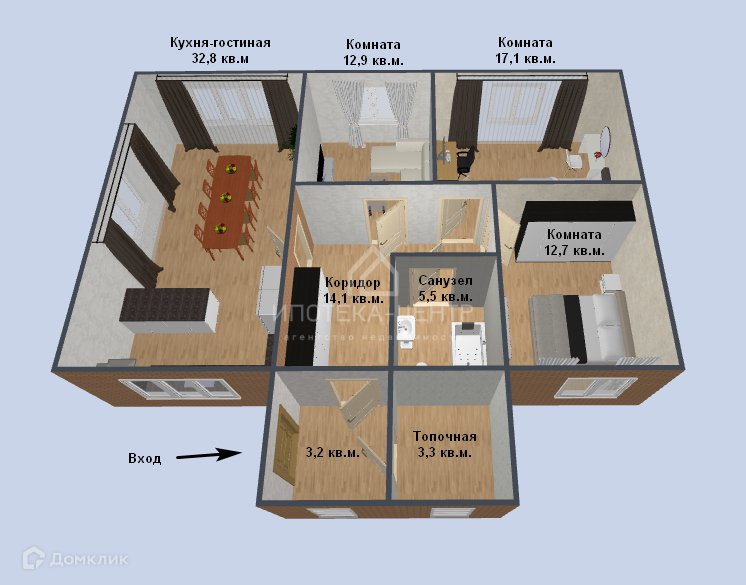 Площадь кухни 32.8 м2