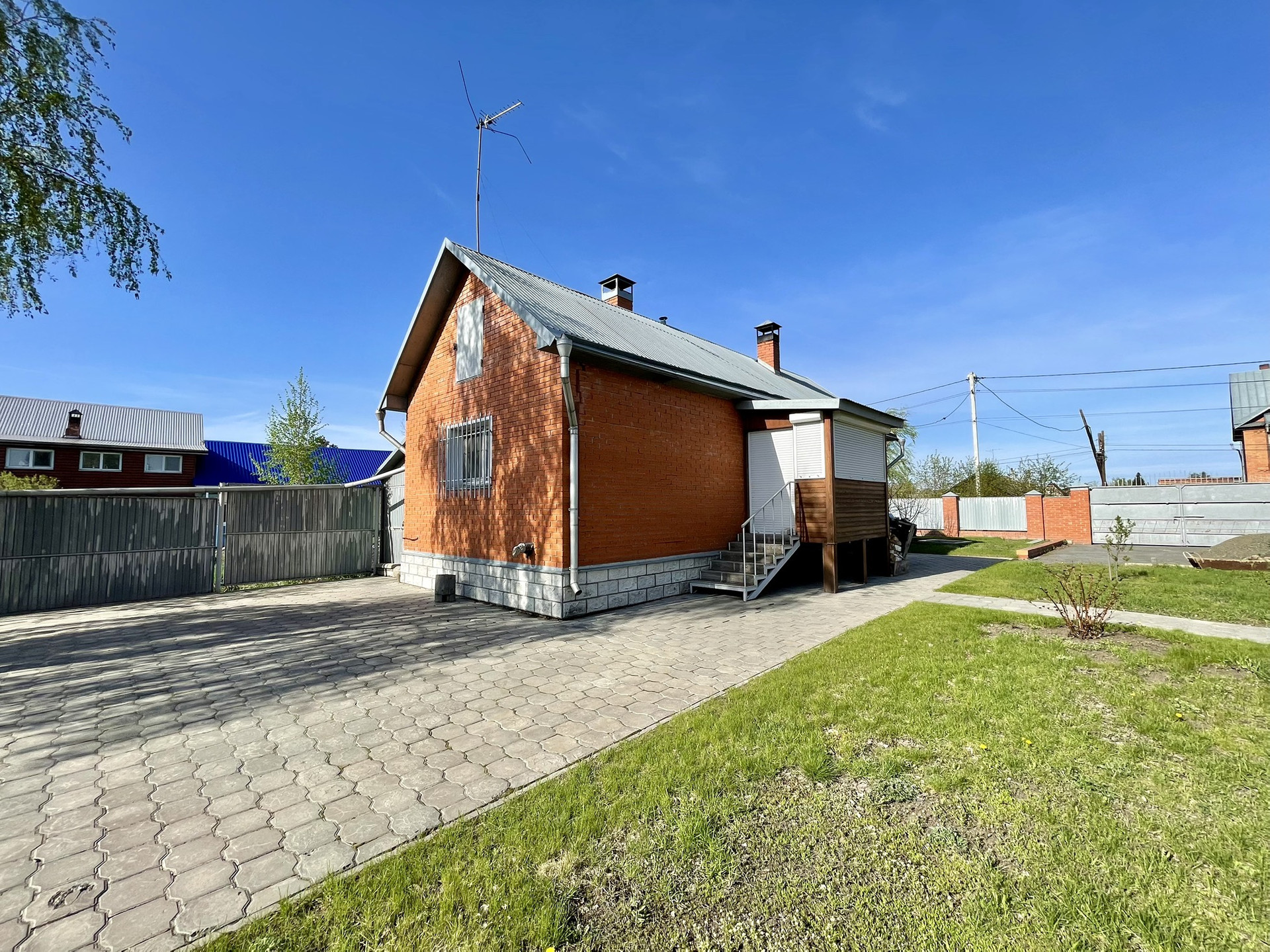Полностью кирпичный на сваях.