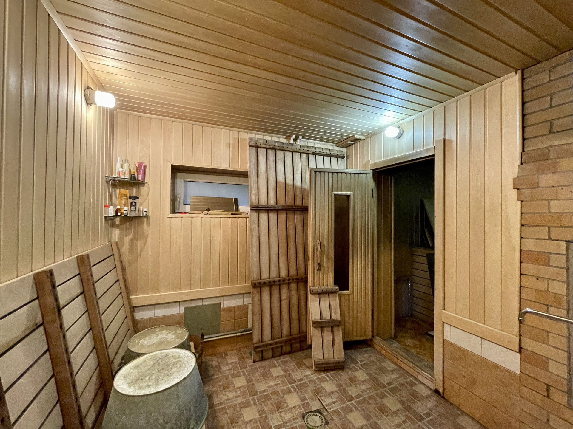парилка, душевая, санузел, комната отдыха с живым камином.
