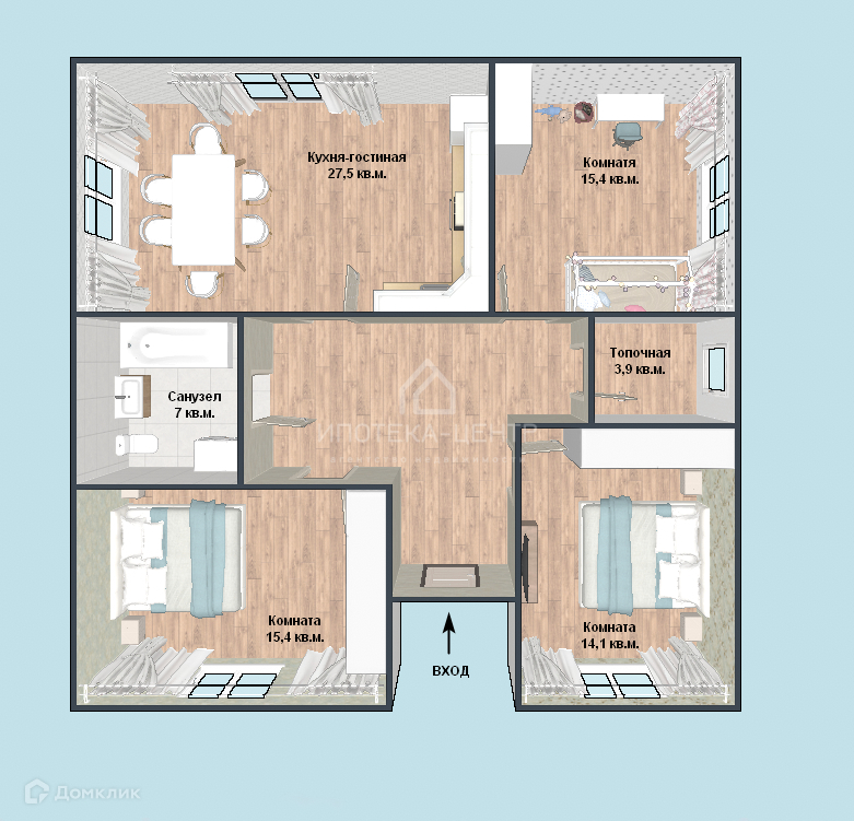 Планировка: 3 отдельные комнаты, просторная кухня-гостиная 27,5 кв.м. с большими окнами и выходом во двор, совмещенный санузел, подсобное помещение!