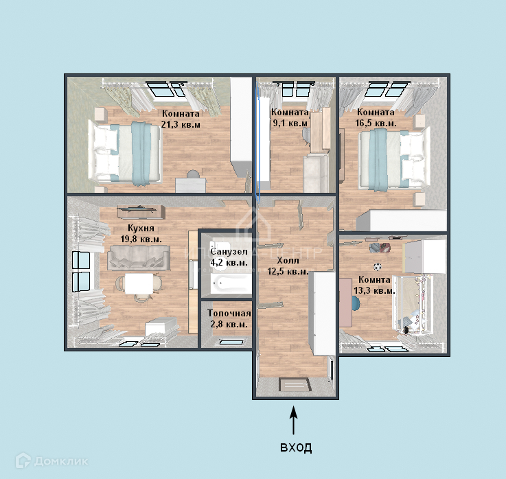Планировка: 4 отдельные комнаты, просторная кухня, большой санузел, топочная и теплая веранда.