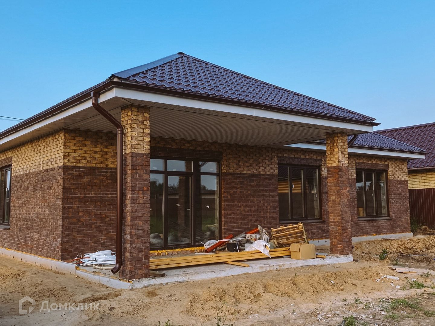 Материал строительства - газоблок облицованный кирпичом.