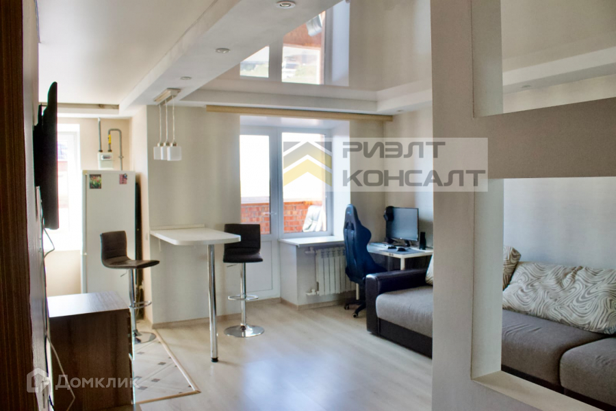 Компания РиэлтКонсалт предлагает к приобретению  1-комнатную квартиру с отличным ремонтом в кирпичном доме 2014 года постройки в экологически чистом районе. Уютная, комфортная, теплая, светлая квартира в тихом и спокойном месте нашего города. Планировка квартиры включает комнату, объединенную с кухней, совмещенный санузел, прихожую, застекленную ПВХ лоджию.  В санузле установлена душевая кабина, новая сантехника.  Окна ПВХ. На полу в прихожей, санузле, кухне и на лоджии - плитка, в комнате - ламинат. Новому владельцу остаются кухонный гарнитур, барный стол, большой шкаф-купе в комнате.