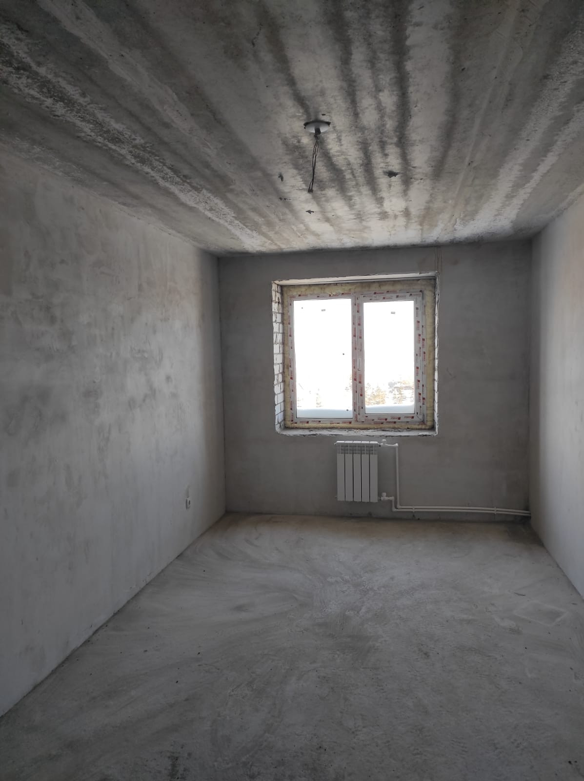 В квартире выполнена стяжка пола, отштукатурены стены, установлены стекло пакеты на окнах и на лоджии.
