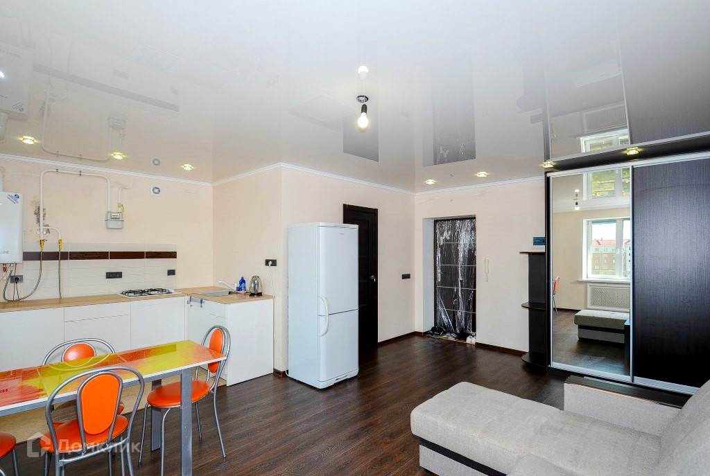 Квартира в хорошем состоянии: пол и стены выровнены, уложен ламинат, стены оштукатурены и выкрашены, установлены натяжные потолки. В санузле стены и пол оклеены плиткой, установлена душевая кабина. Оборудованы места для хранения - есть два больших шкафа-купе. Квартира теплая и светлая. В подъезде выполнен ремонт в 2022 году. Во дворе обустроена большая детская площадка, много парковочных мест для автомобилей.