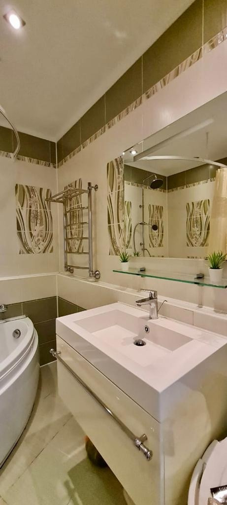 Уютная, просторная 3 ком квартира, в светлых тонах.                                                         Удачное расположение квартиры на две стороны.                                                  Изолированные спальные комнаты, кухня студия.                                                        Просторный совмещенный санузел.