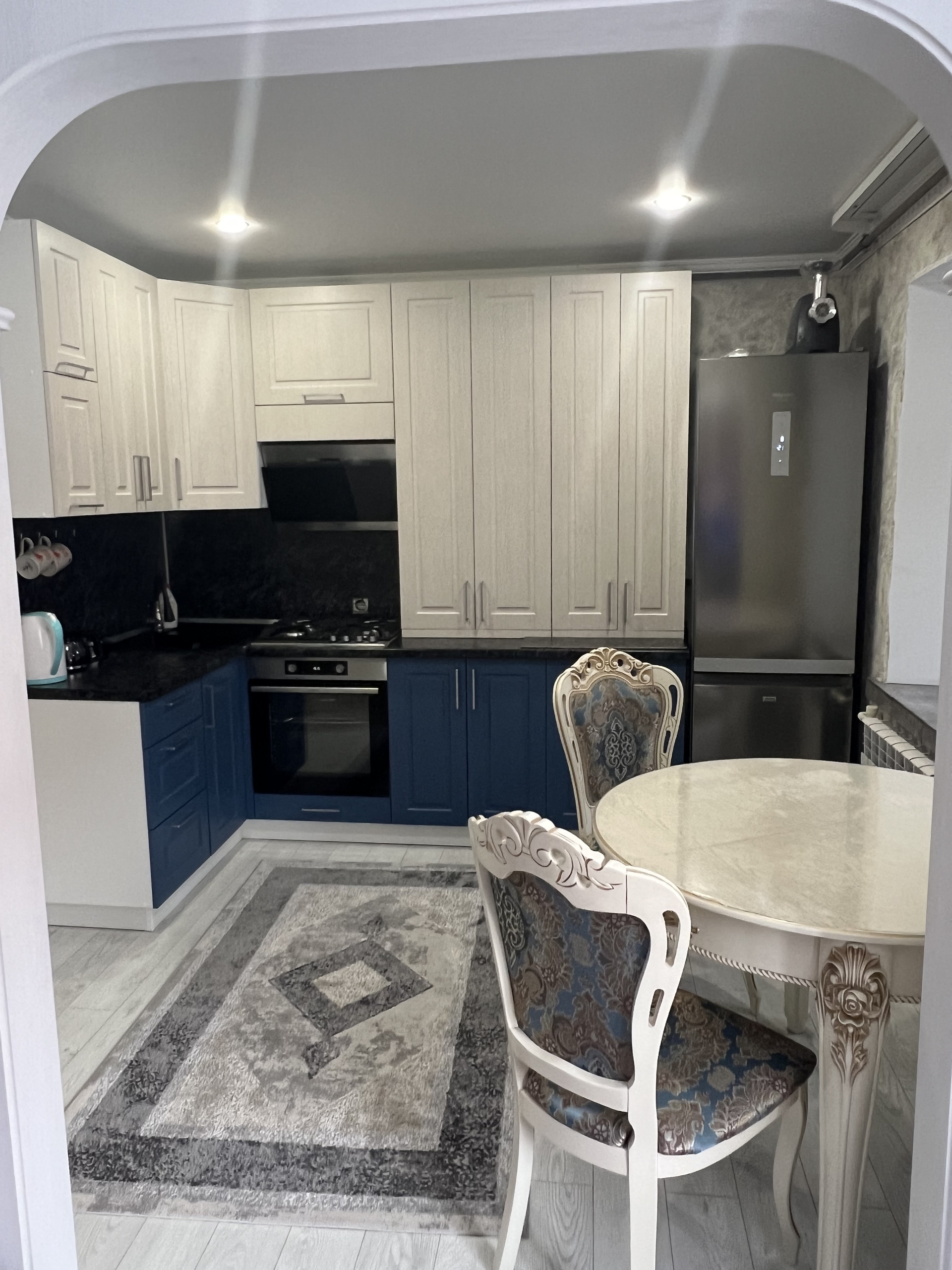 В квартире остается встроенный кухонный гарнитур со встроенной бытовой техникой.