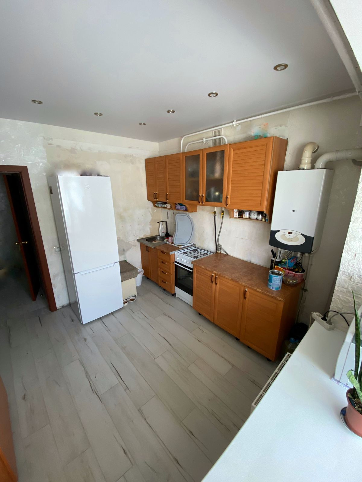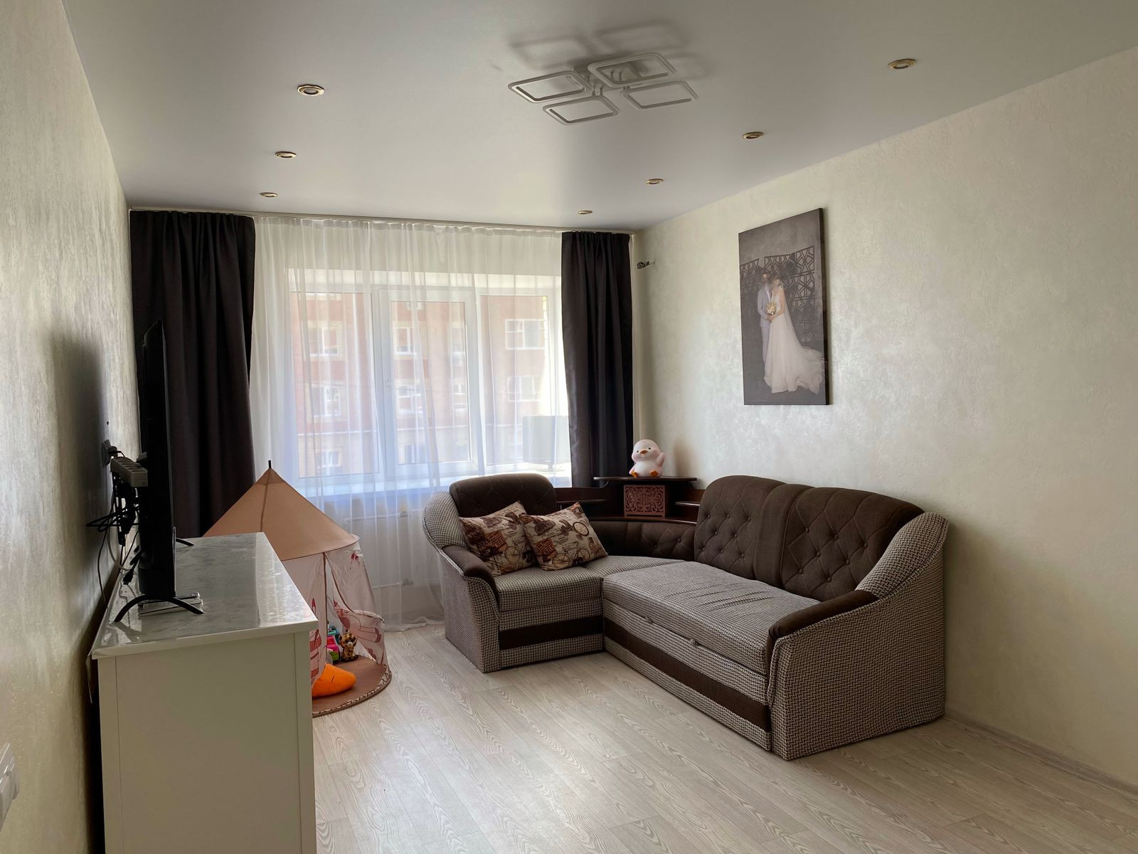 Квартира в отличном состоянии: натяжные потолки и декоративная штукатурка во всех комнатах, современный качественный линолеум в зале и спальне, в коридоре и на кухне на полу кафель. В ванной и туалете свежий ремонт, новая сантехника и унитаз - все остается новым владельцам. На кухне стена сделана из декоративного гипса.