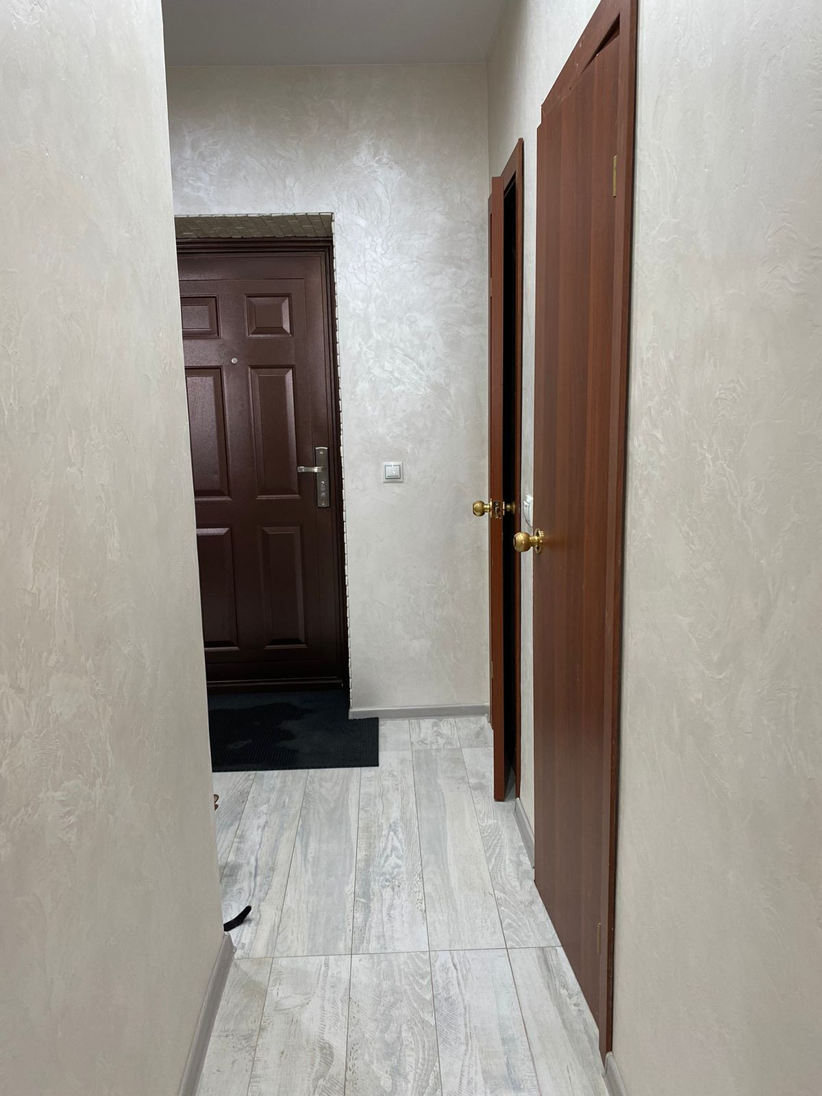 В квартире установлен умный домофон с видео, можно открывать дверь через телефон. В подъезде установлена камера.
