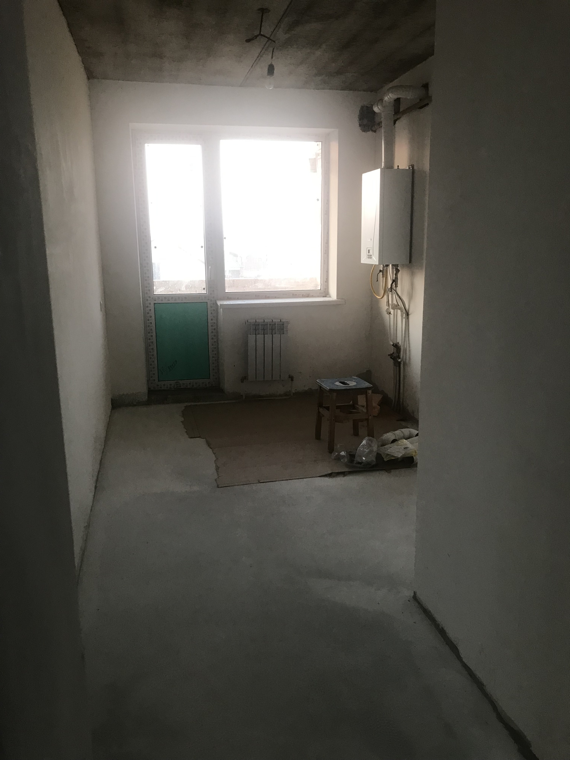 Продаю двухкомнатную квартиру в новом доме. В квартире наливной пол, стены готовы к оклейке обоями, в санузле установлена сантехника, автономное отопление (двухконтурный котел). В доме централизованная канализация, водопровод, газ и электричество.