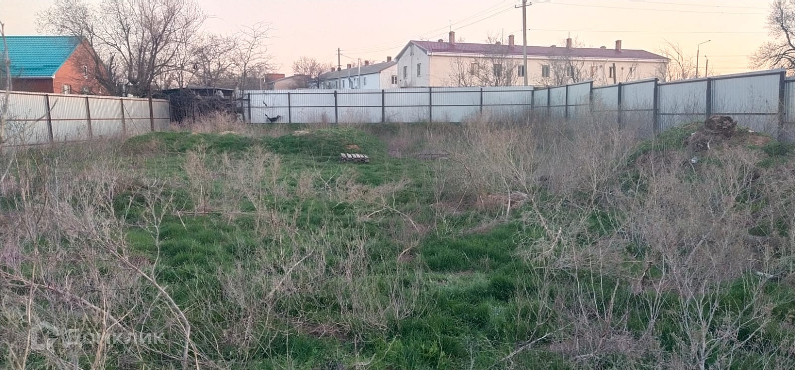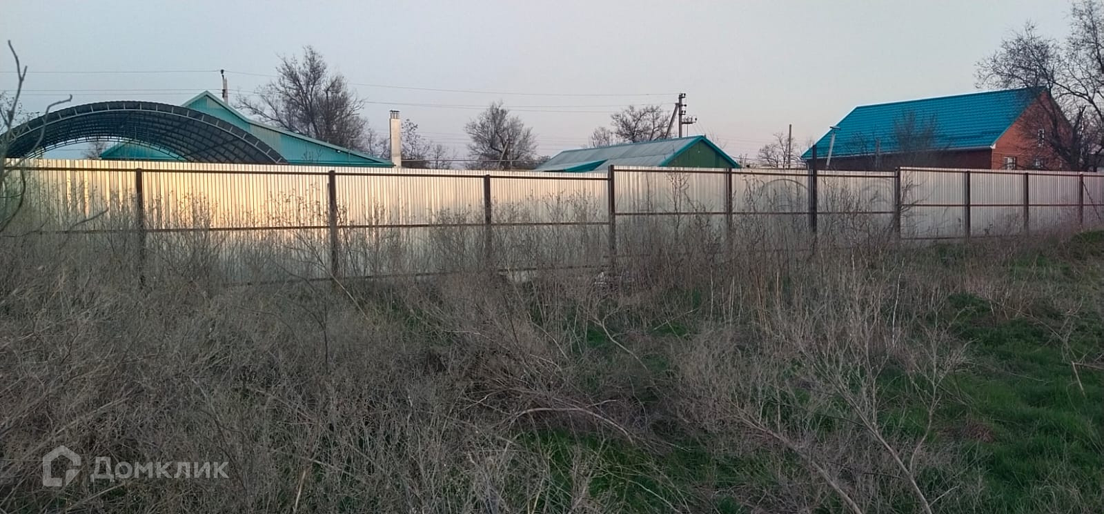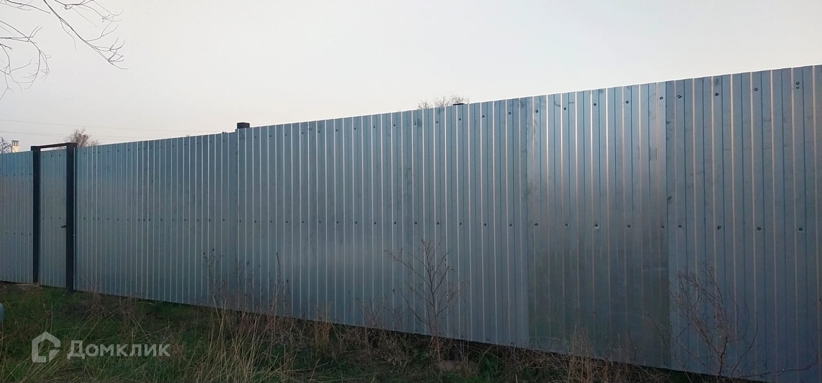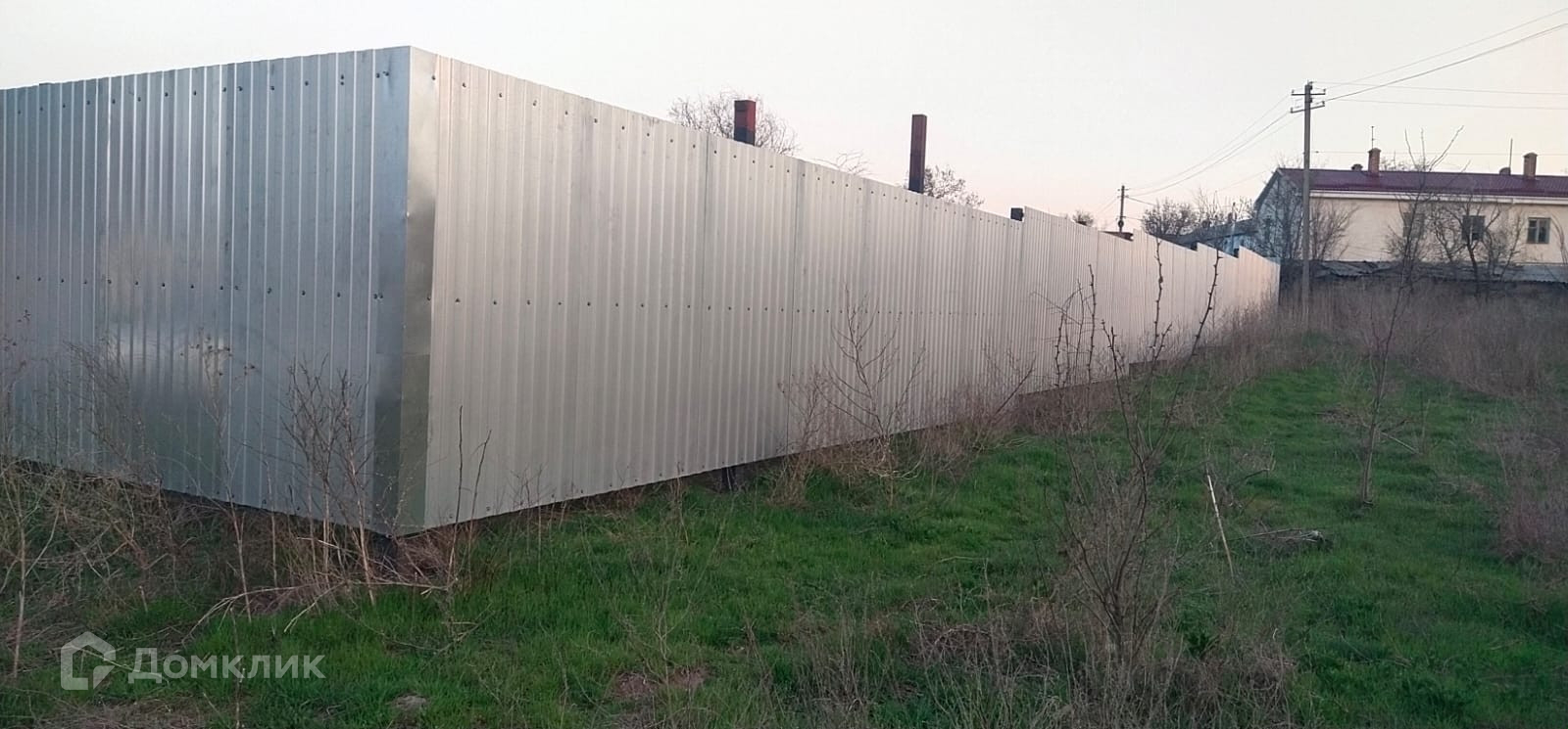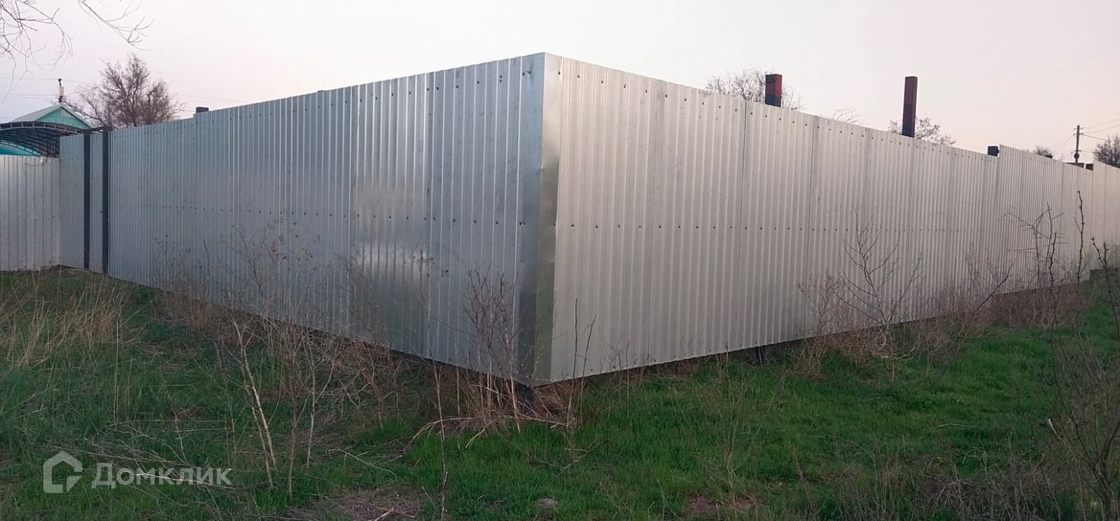 Площадь = 8 соток, огорожен забором.