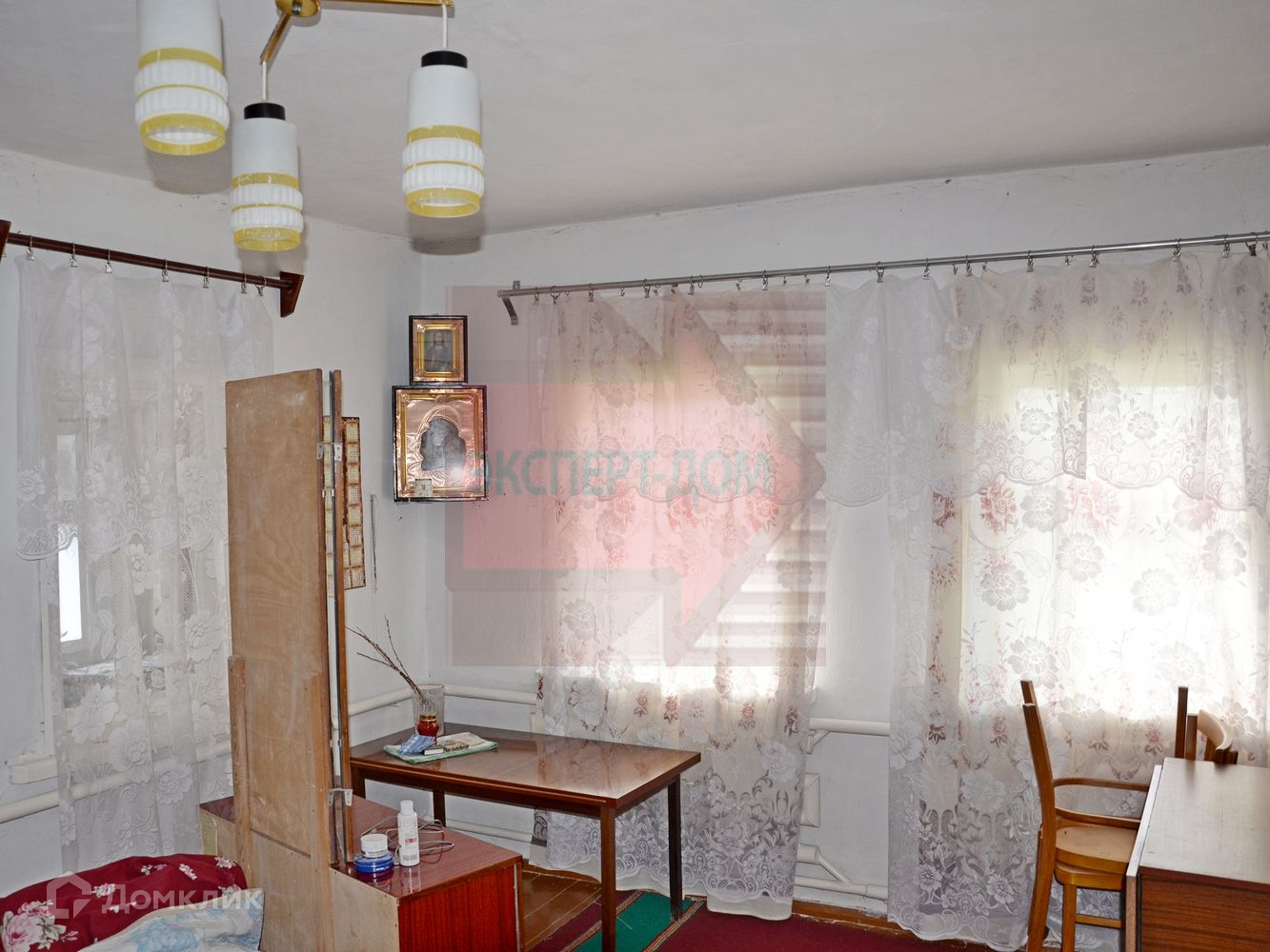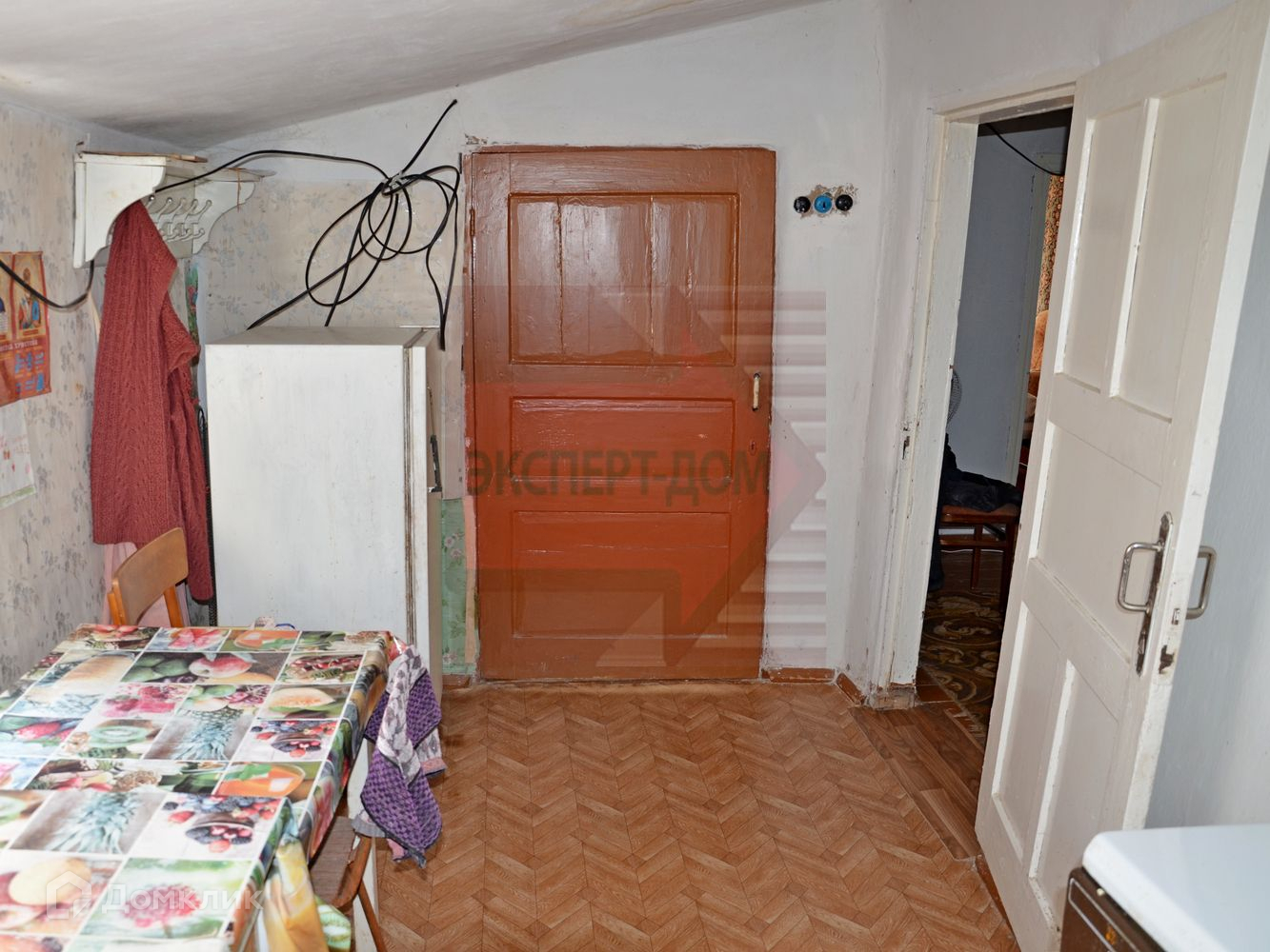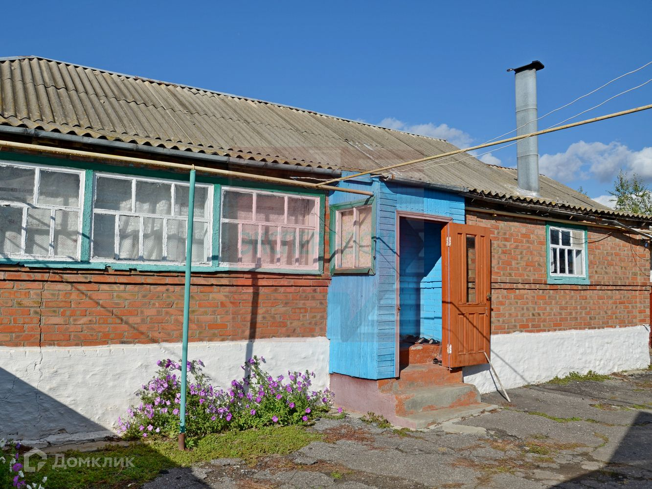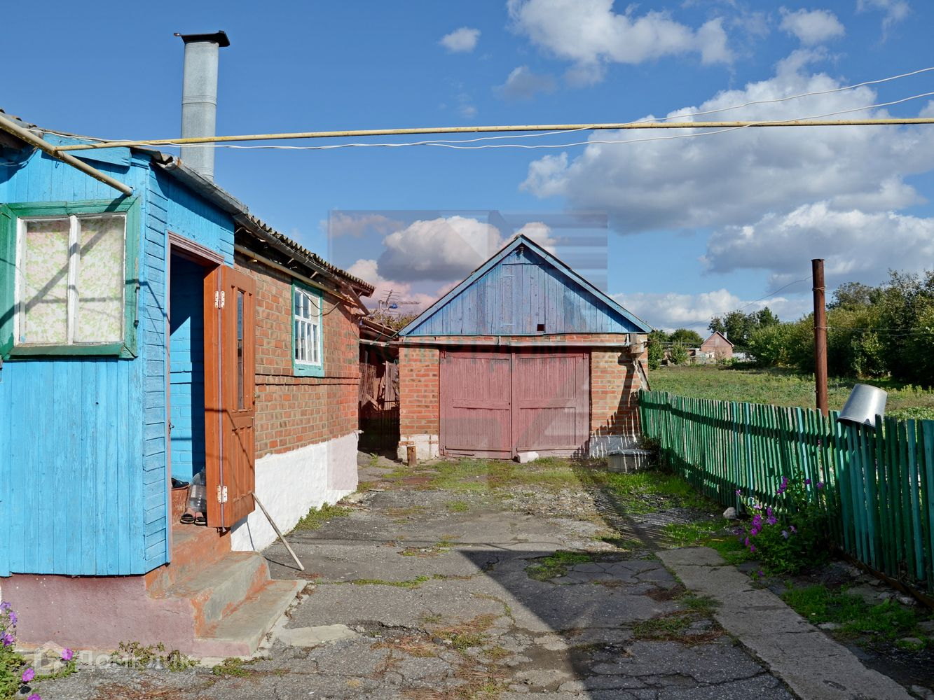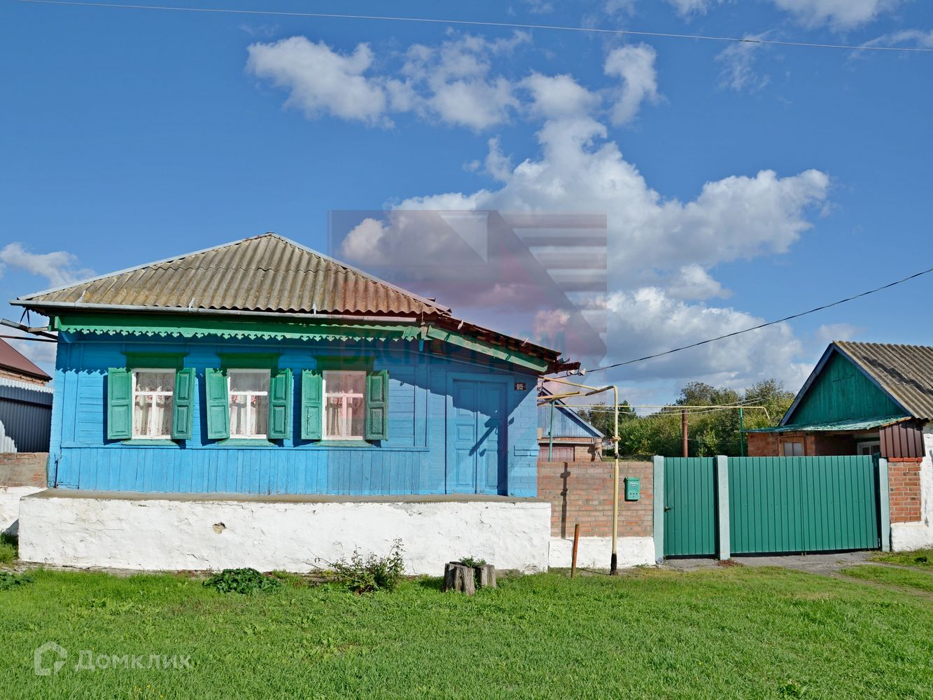 Дом теплый, материал стен: саман, обложенный кирпичом, фасадная часть отделана деревом и покрашена. Крыша шифер, не течет.