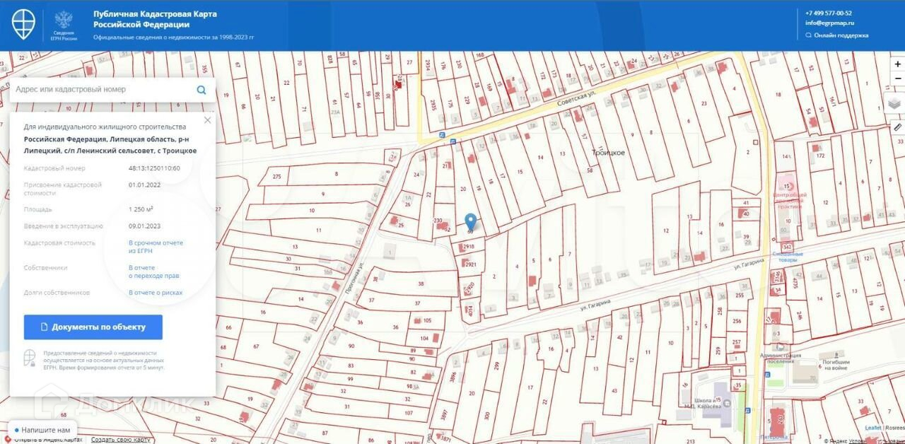 Продаётся участок в селе Троицкое улица Советская кадастровый номер 48:13:1250110:60, коммуникации по границе участка газ, свет, вода.