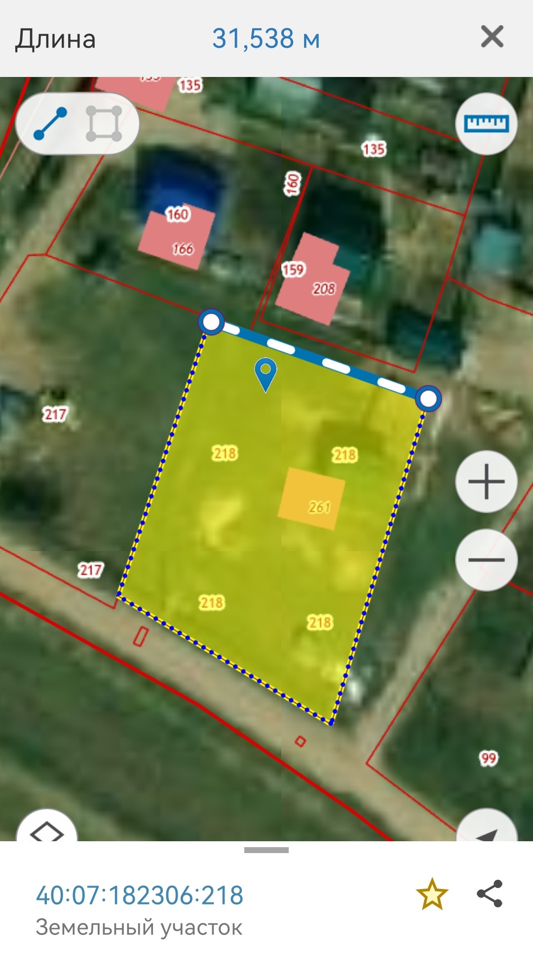 Участок. 40:07:182306:218, 14 соток, ЛПХ (ПМЖ), размеры указаны на фото.