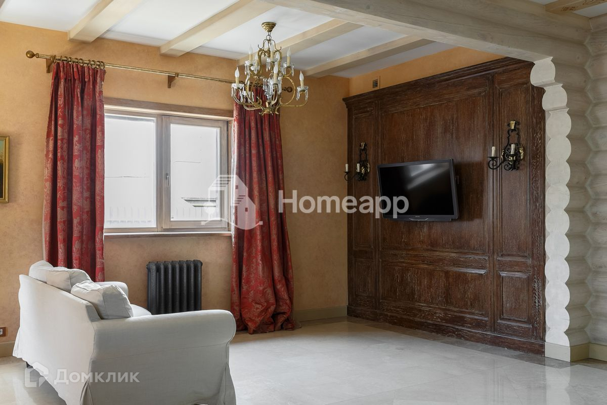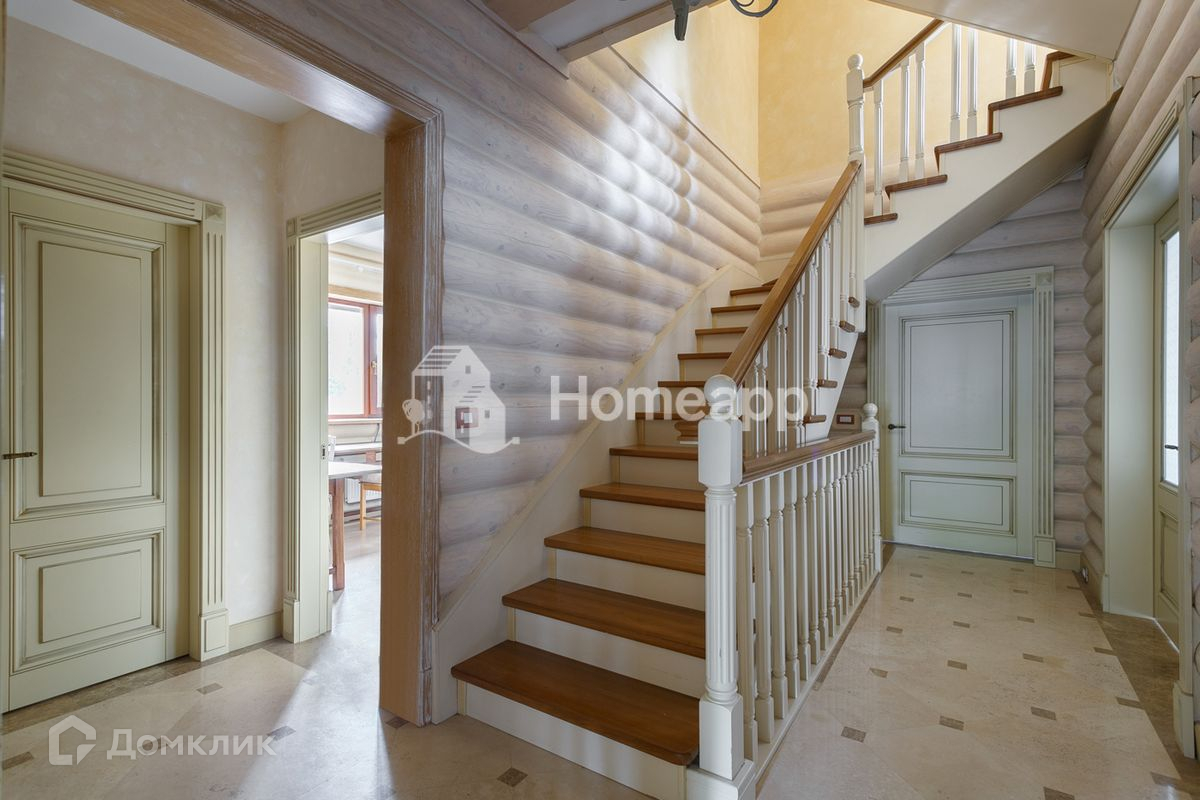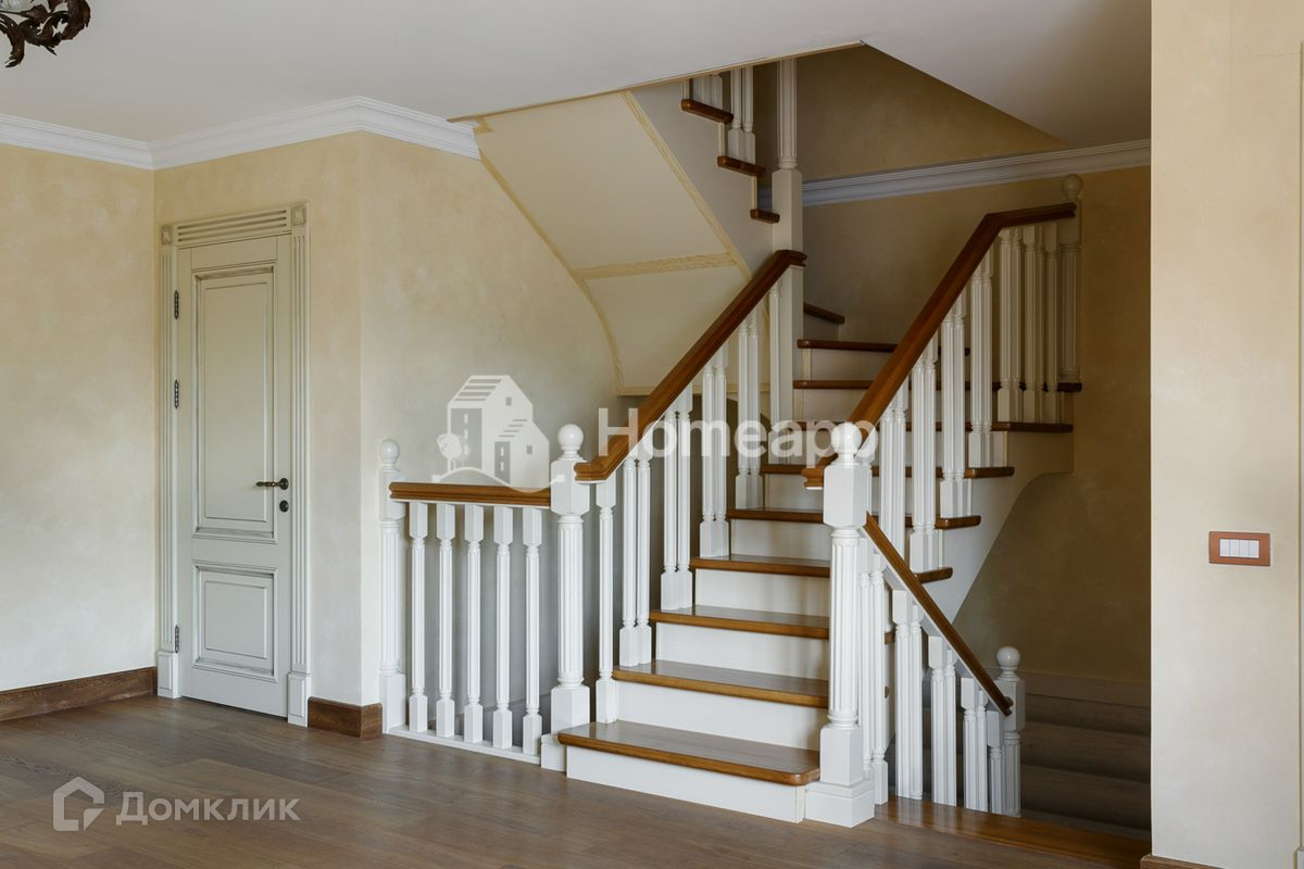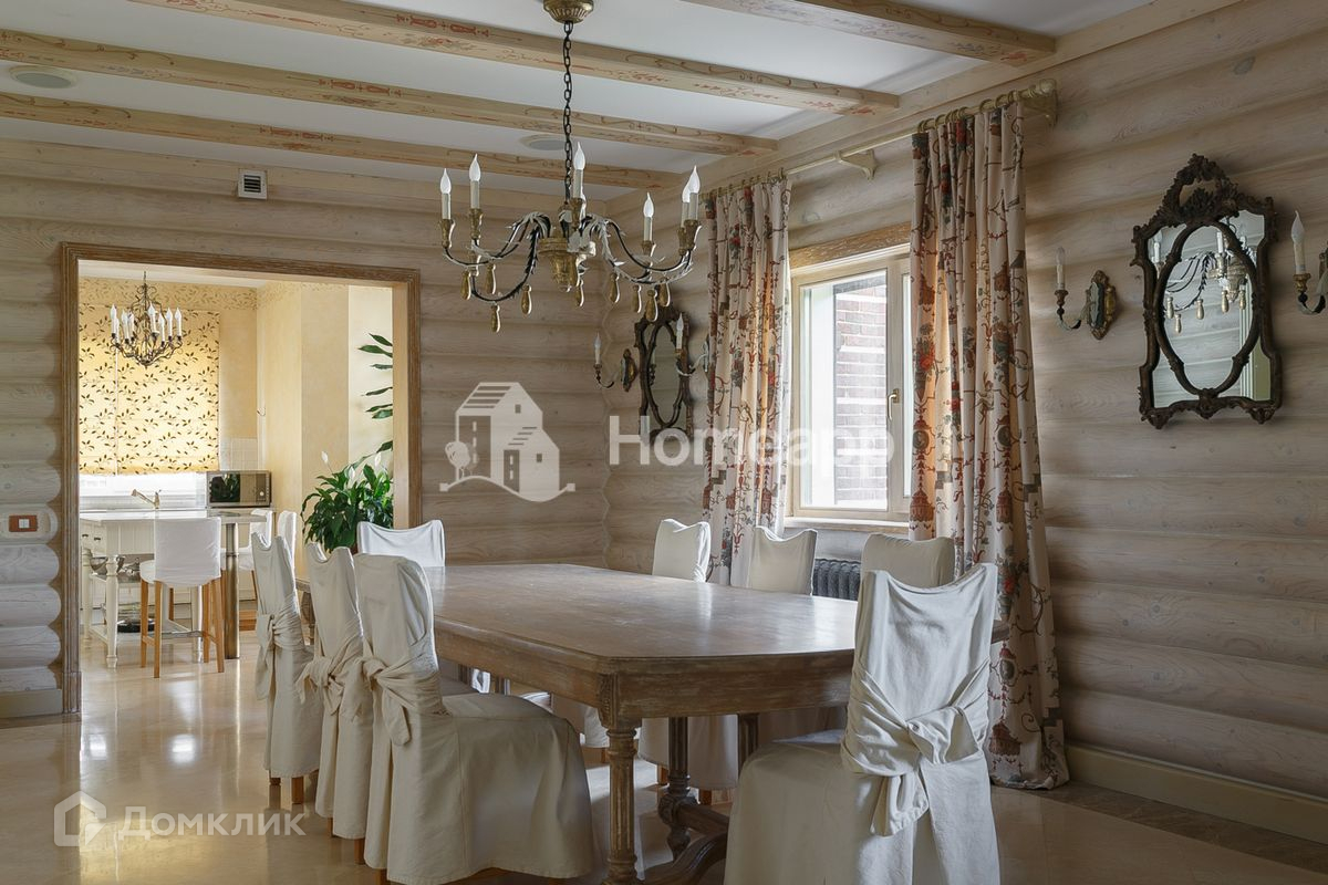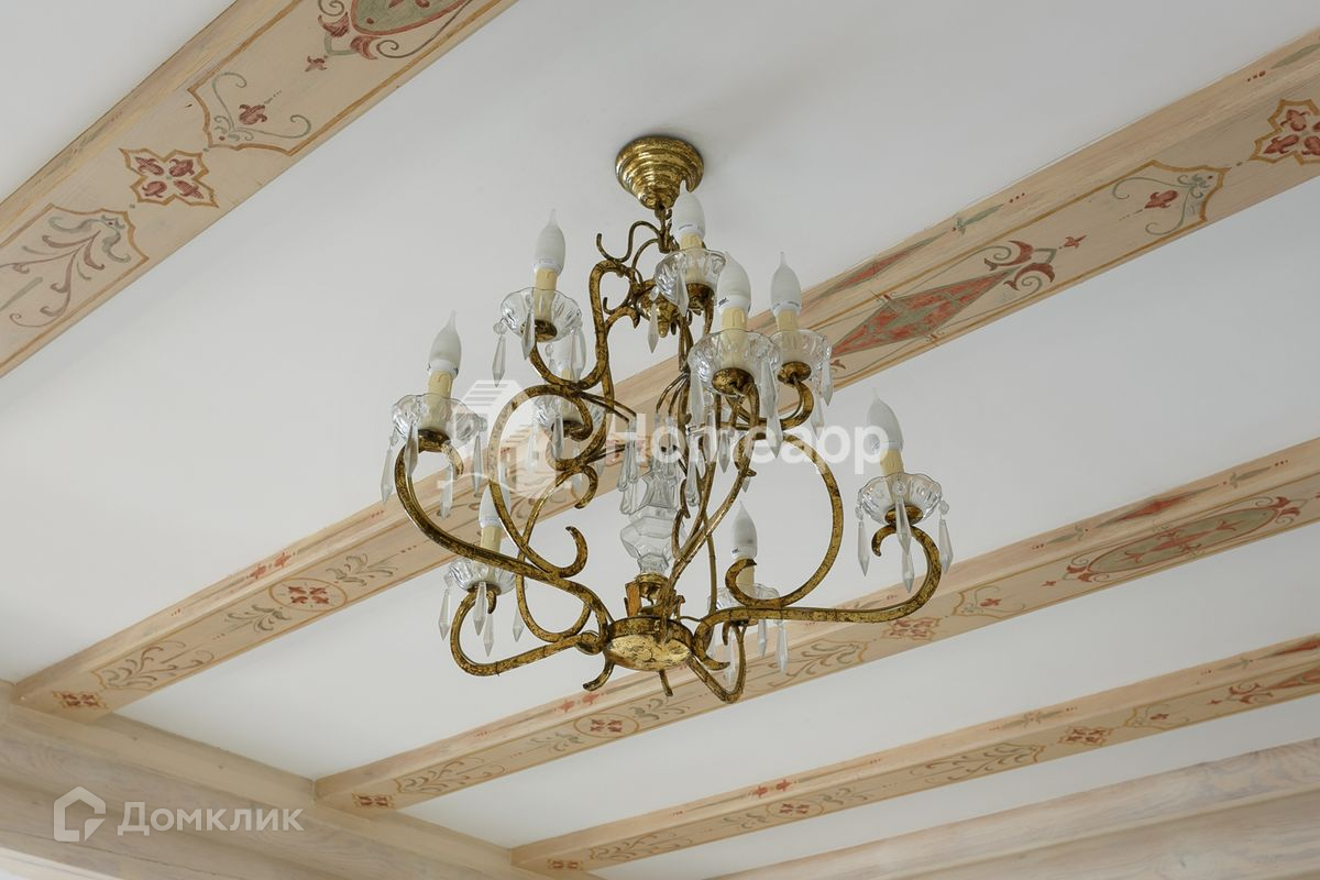 Осветлённое дерево, мраморные полы первого этажа с подогревом, художественная роспись потолков, изразцы ручной работы на камине. Стены художественно окрашены, некоторые обиты состаренными дубовыми панелями, выполнен дизайн освещения.