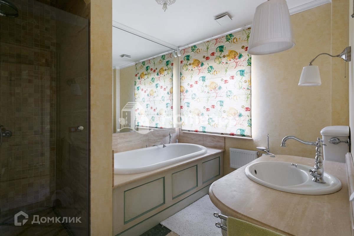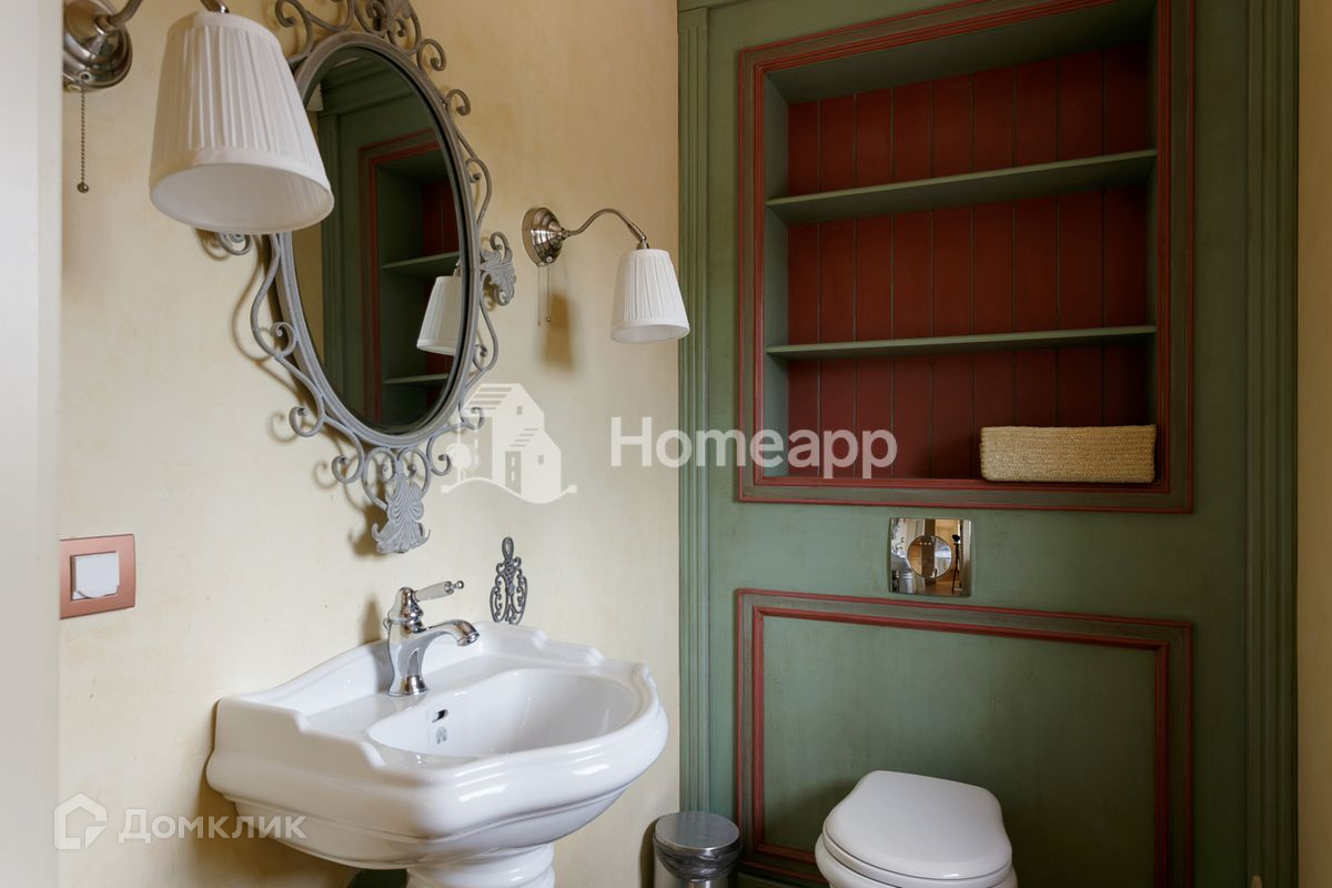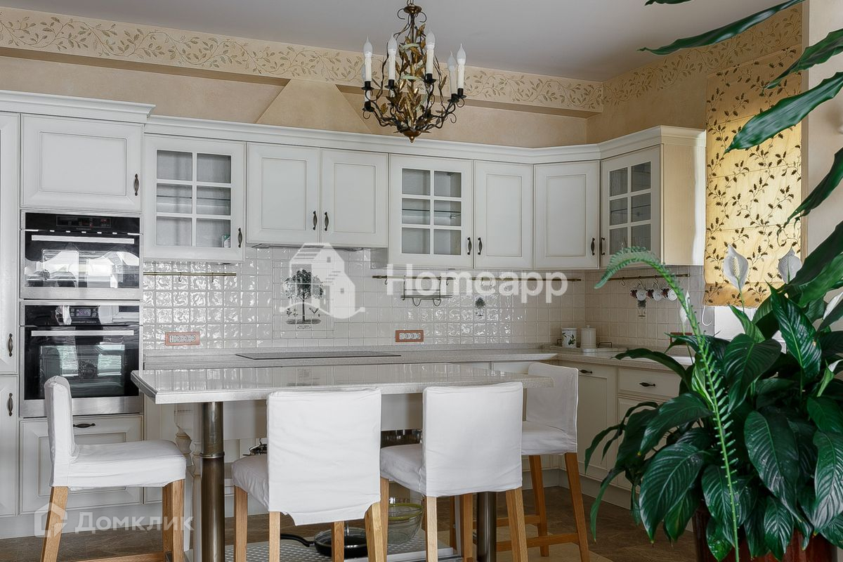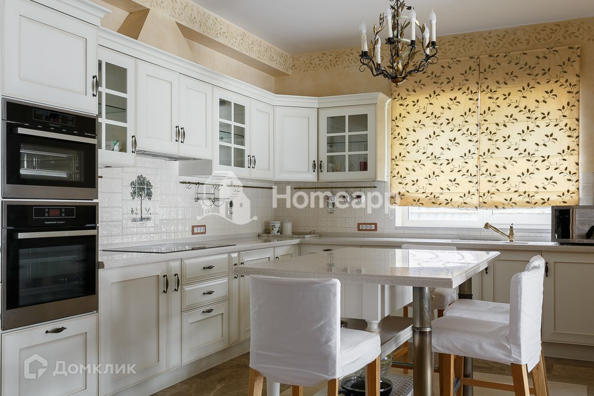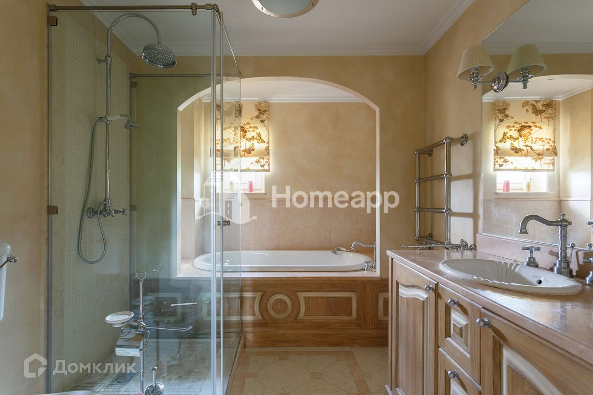 Осветлённое дерево, мраморные полы первого этажа с подогревом, художественная роспись потолков, изразцы ручной работы на камине. Стены художественно окрашены, некоторые обиты состаренными дубовыми панелями, выполнен дизайн освещения.