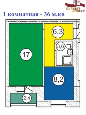 Общая площадь 36 м2
