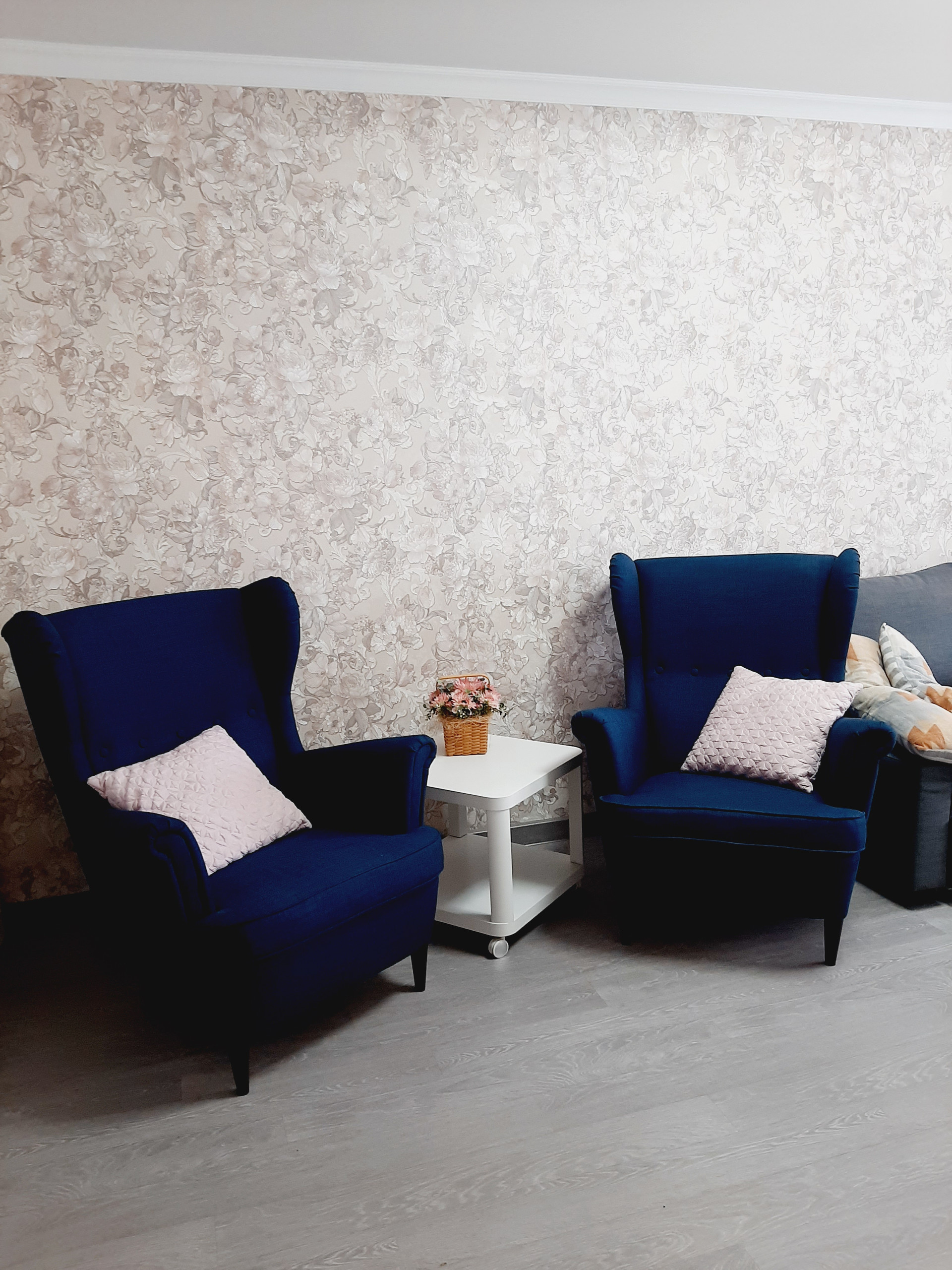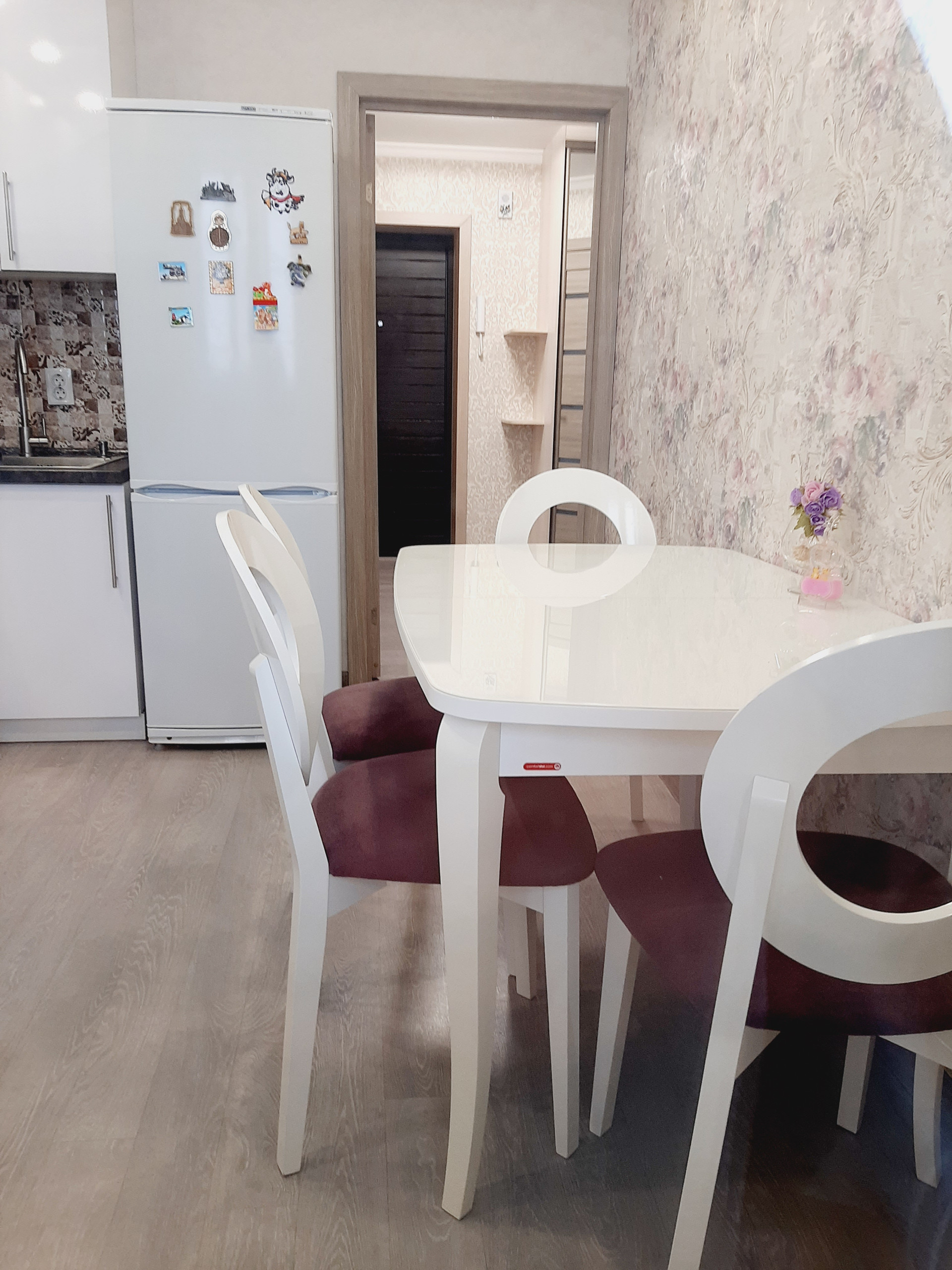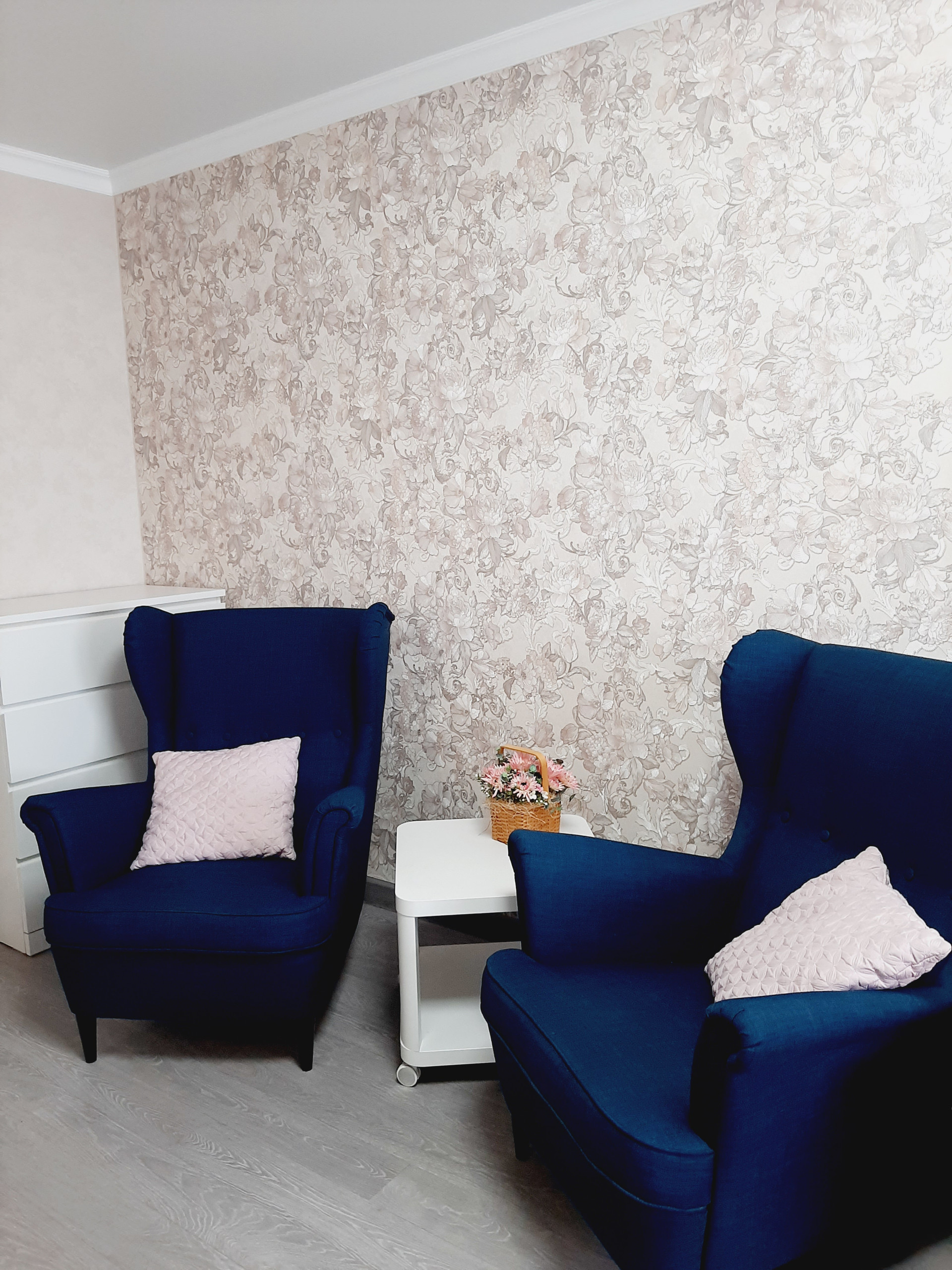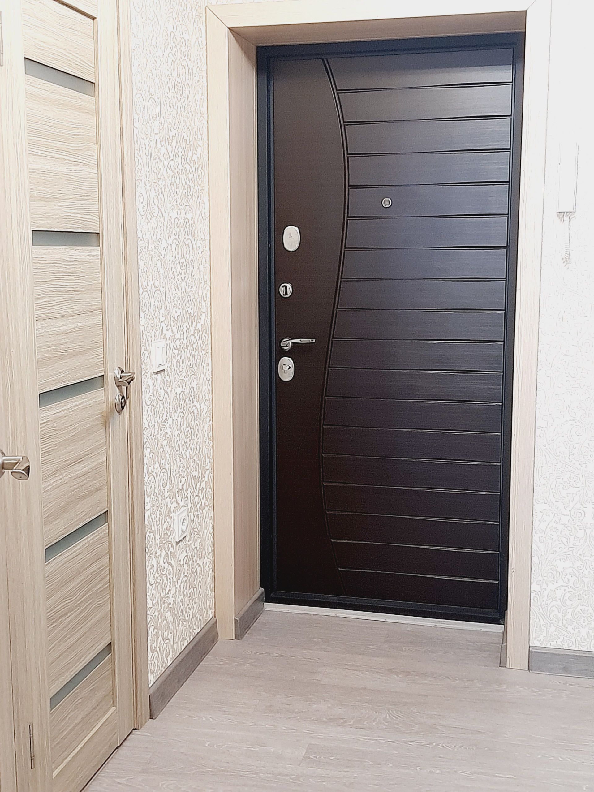 Ремонт в квартире выполнен из высококачественных материалов, хорошими мастерами: выровнены все стены и пол, выполнена разводка и установлено оптимальное количество розеток. Все обои – компаньоны, были подобраны дизайнером. На полу высококачественный промышленный линолеум – очень износостойкий. Все люстры и бра – из одной коллекции – также остаются.