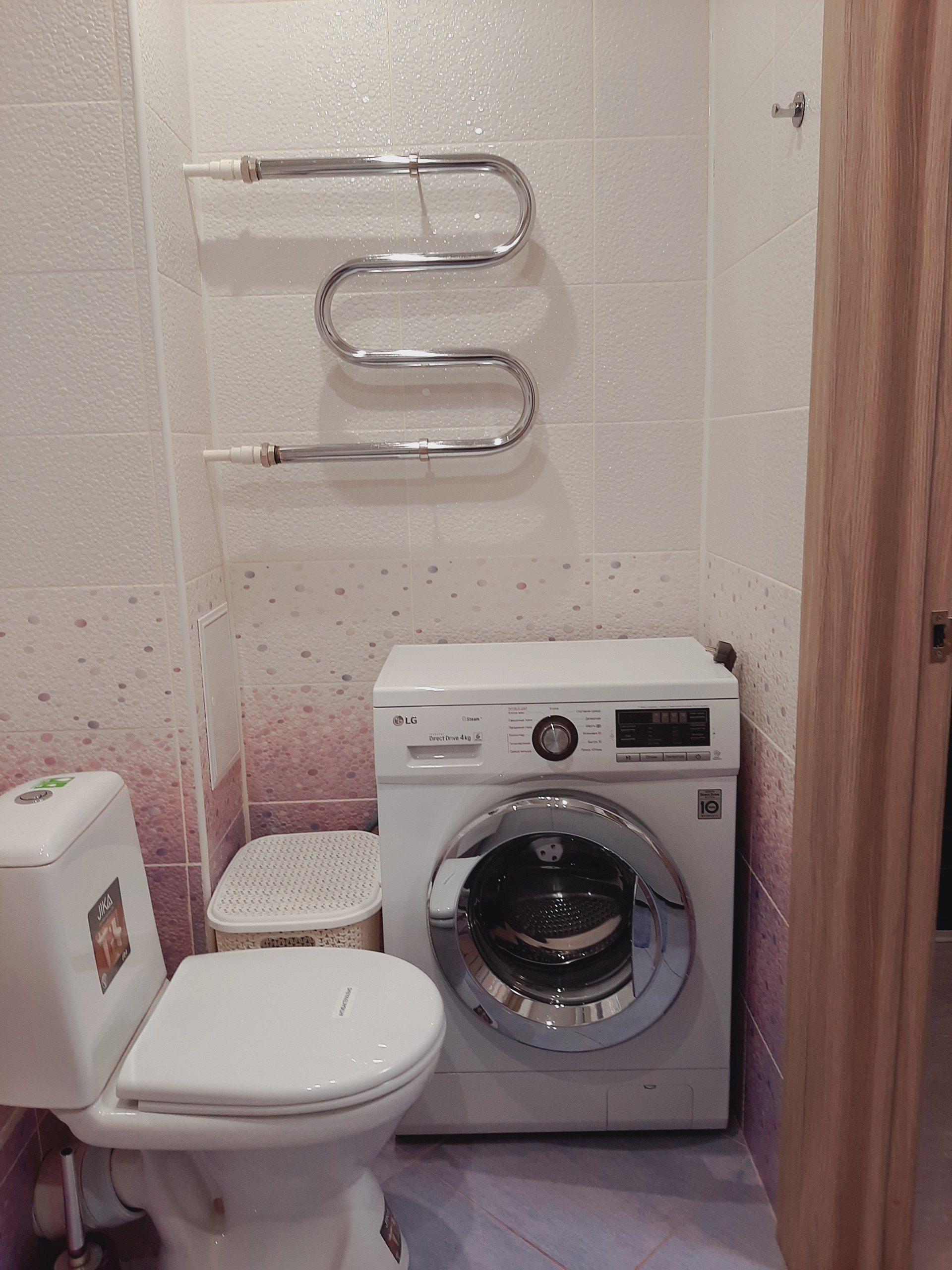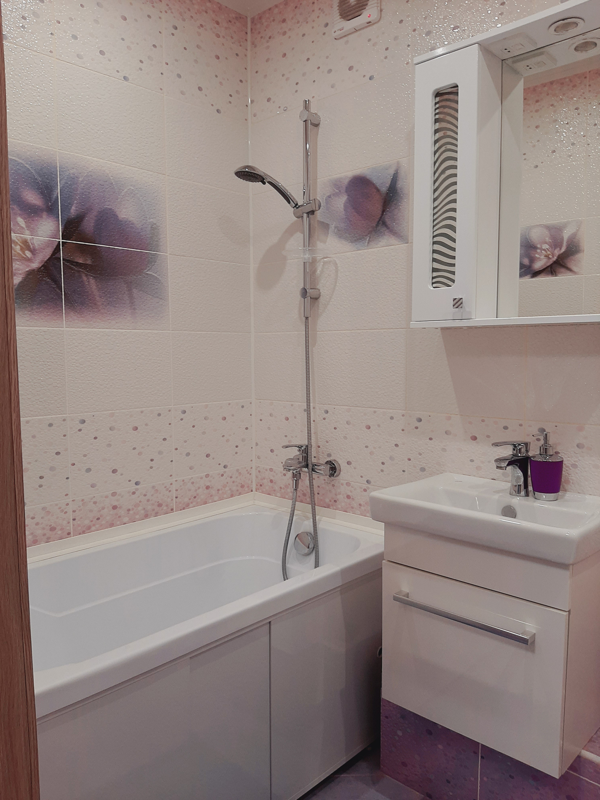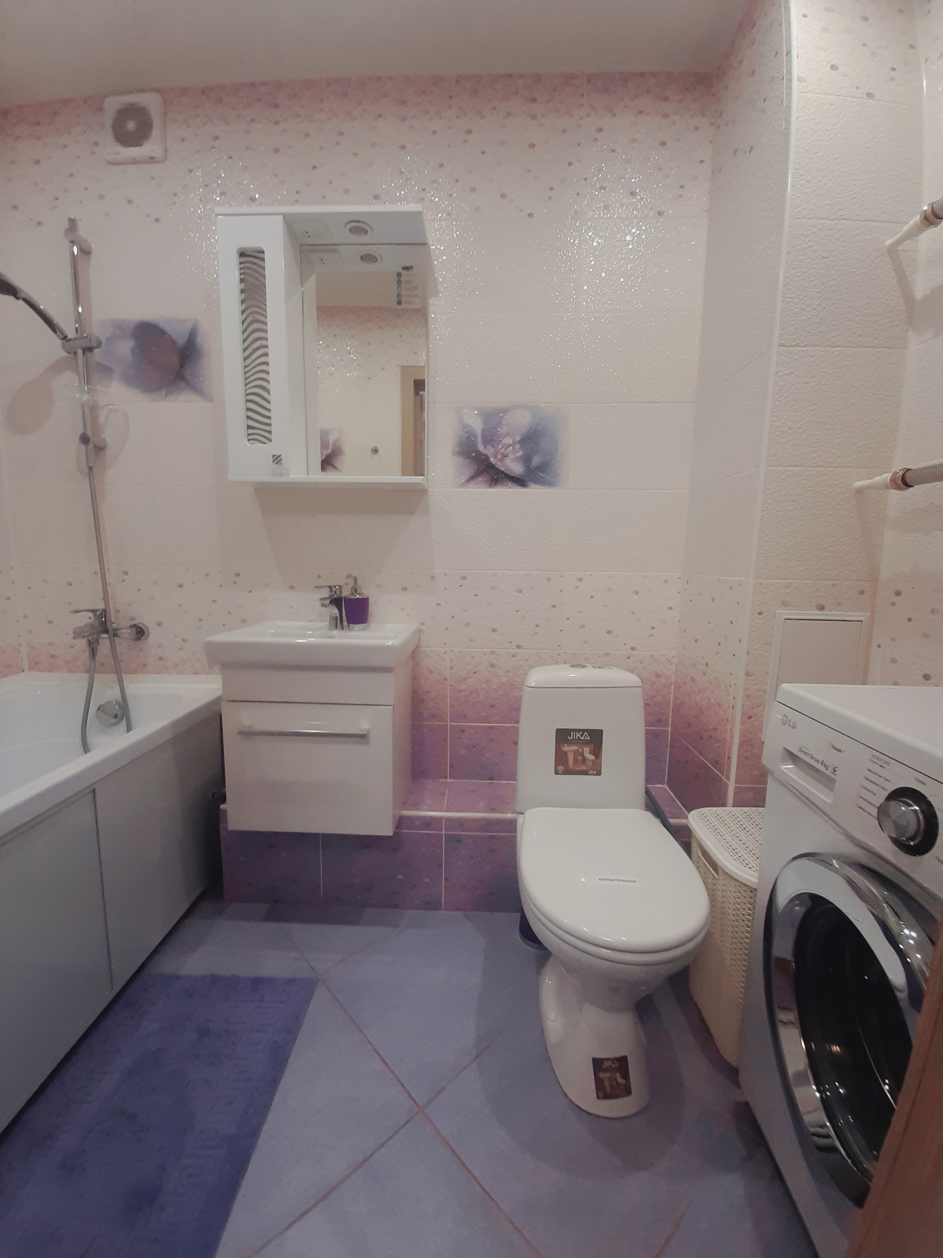 Санузел совмещенный. Облицован коллекционной плиткой. Установлена качественная сантехника, смесители, новая стиральная машина. В прихожей – большой шкаф-купе, который также остается новым владельцам.