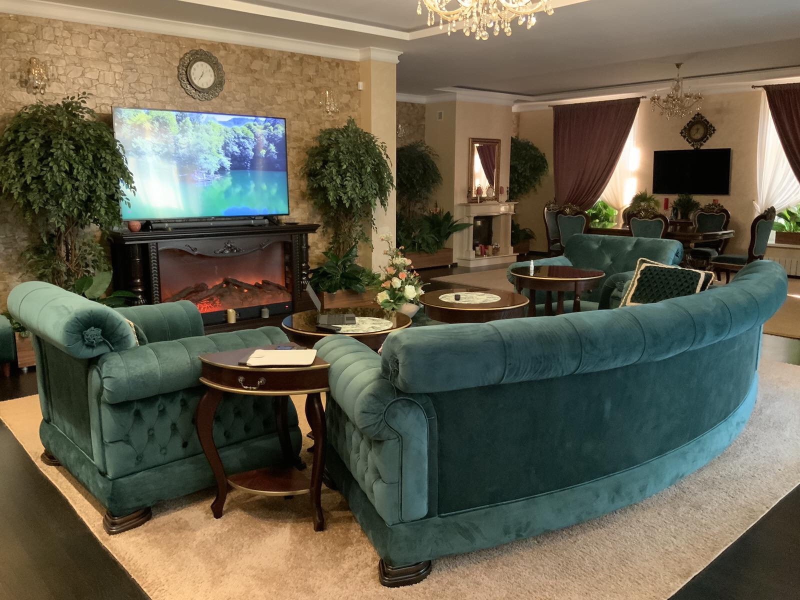 Расположен в с. Троицкое , рядом водохранилище, пляж, известный Троицкий Храм,магазин , всё в пешей 3-х минутной доступности, с отдельным домиком для охраны и управляющего. Село не проезжее, движение Авто минимальное , только те кто живет.