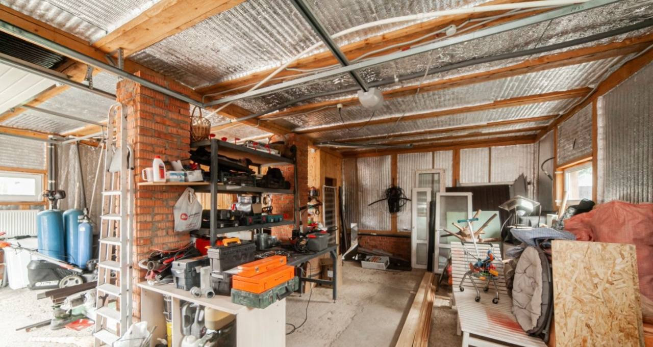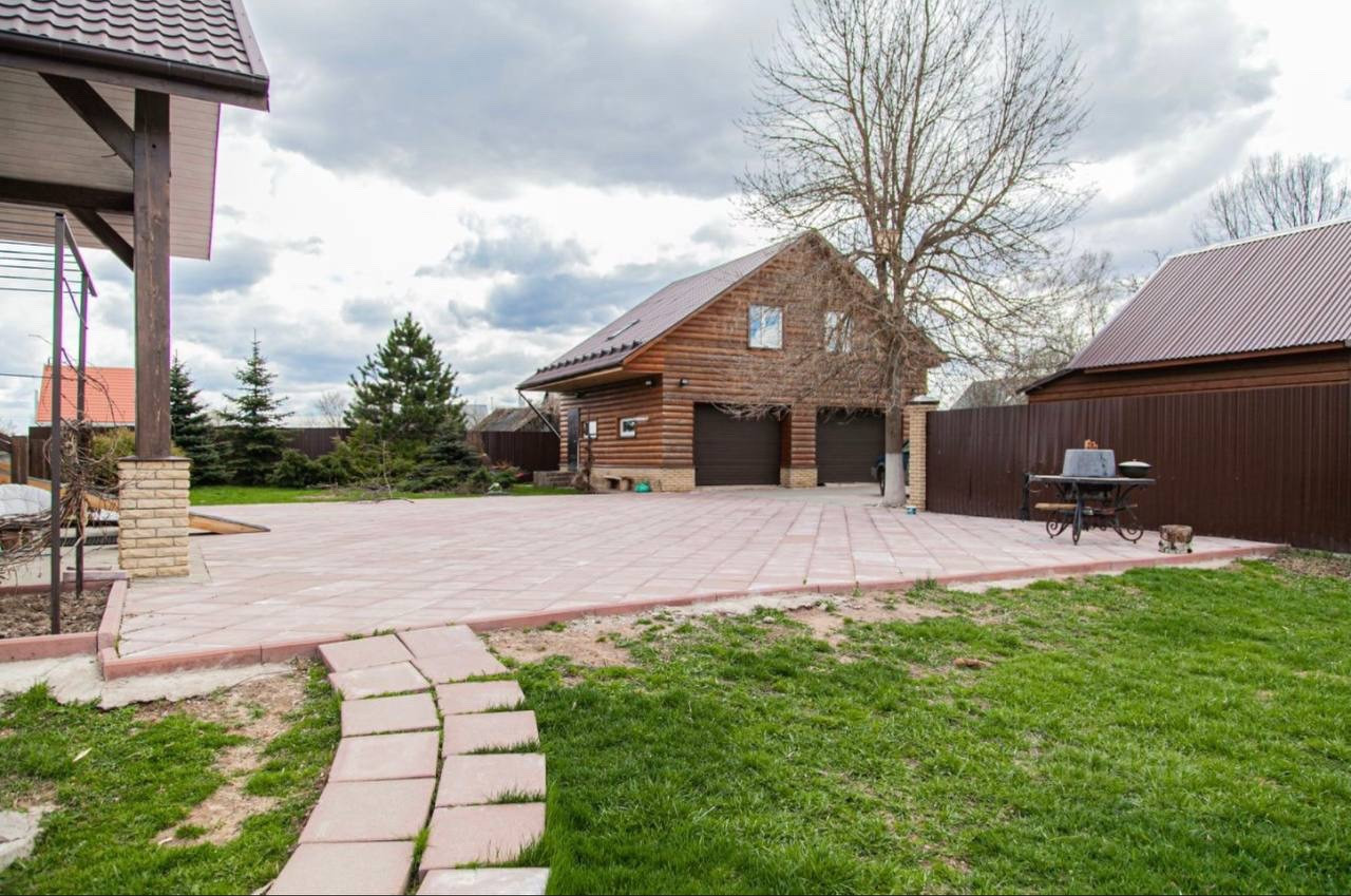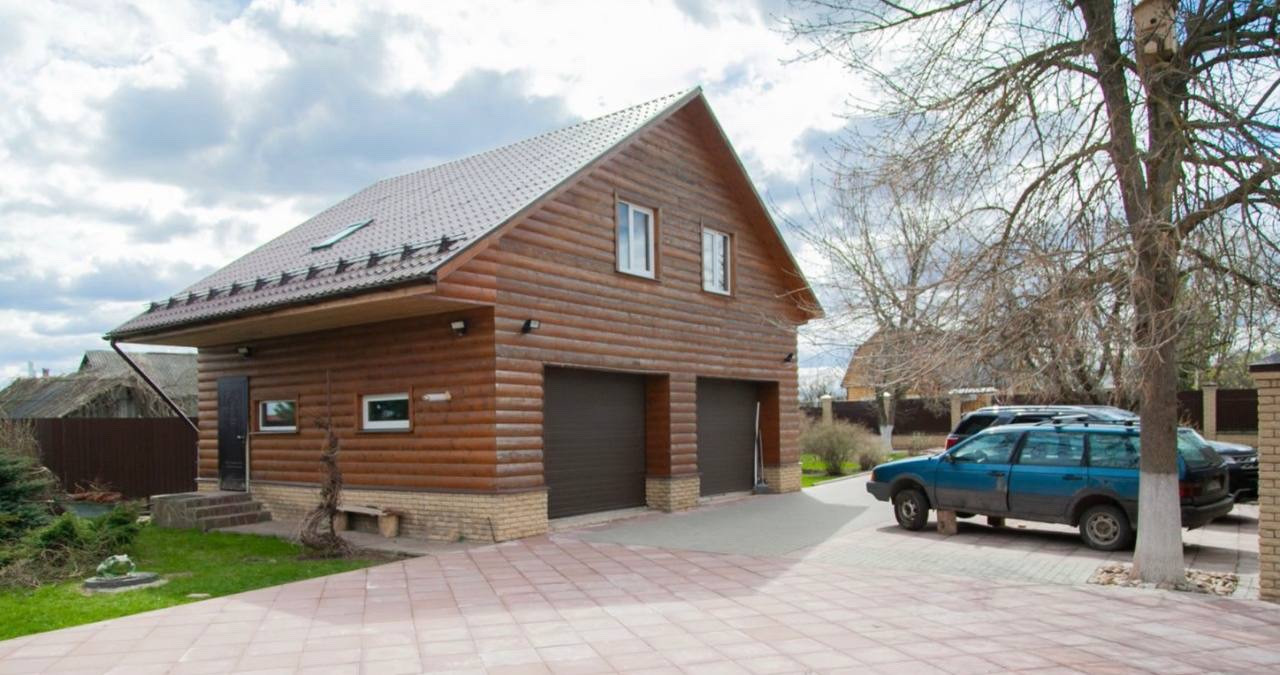 На участке построен гараж под два автомобиля , на втором этаже гаража располагается : гостевой дом со всеми удобствами.