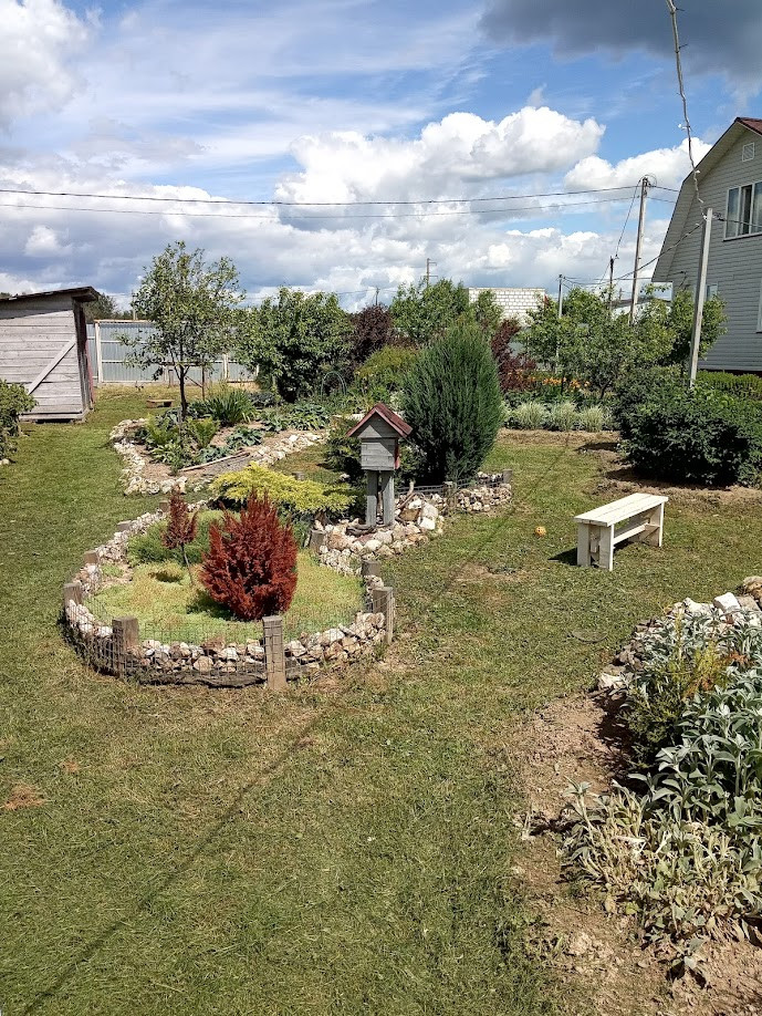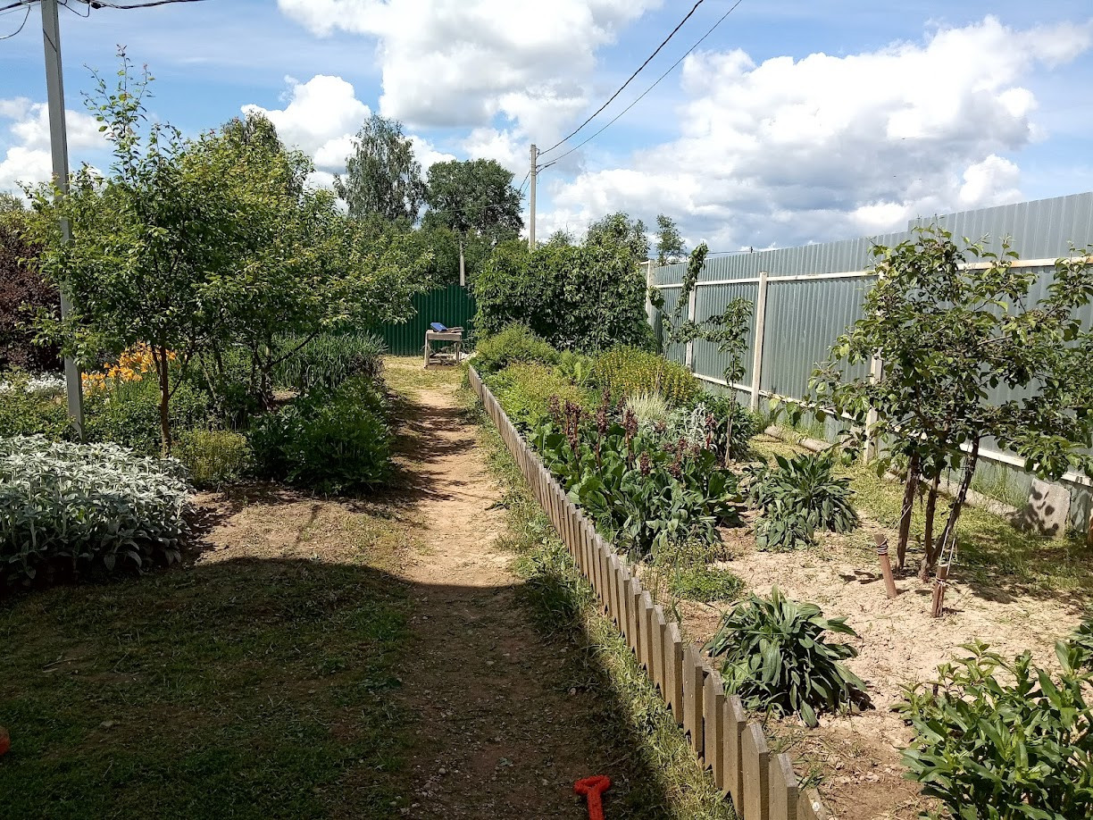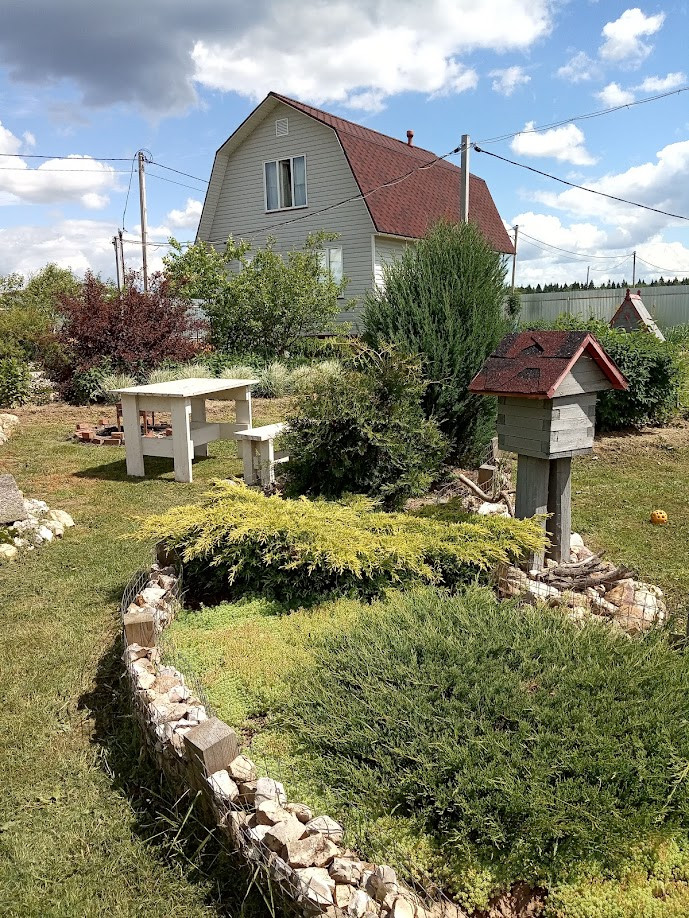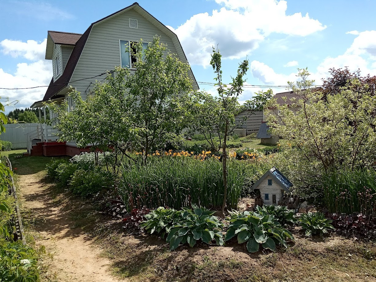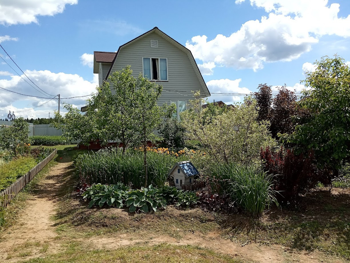 Забор - профлист 2 м. На участке также имеются: баня (20 кв.м), утепленная мастерская (16 кв.м), вольер для собаки (6 кв.м), два сарая (12 и 4 кв.м), дровник. На участке плодовые деревья и кустарники (яблоня, груша, слива, вишня, черноплодная рябина, смородина, крыжовник, малина, ежевика, большая клумба с клубникой), а также декоративные кустарники и многолетние цветы.