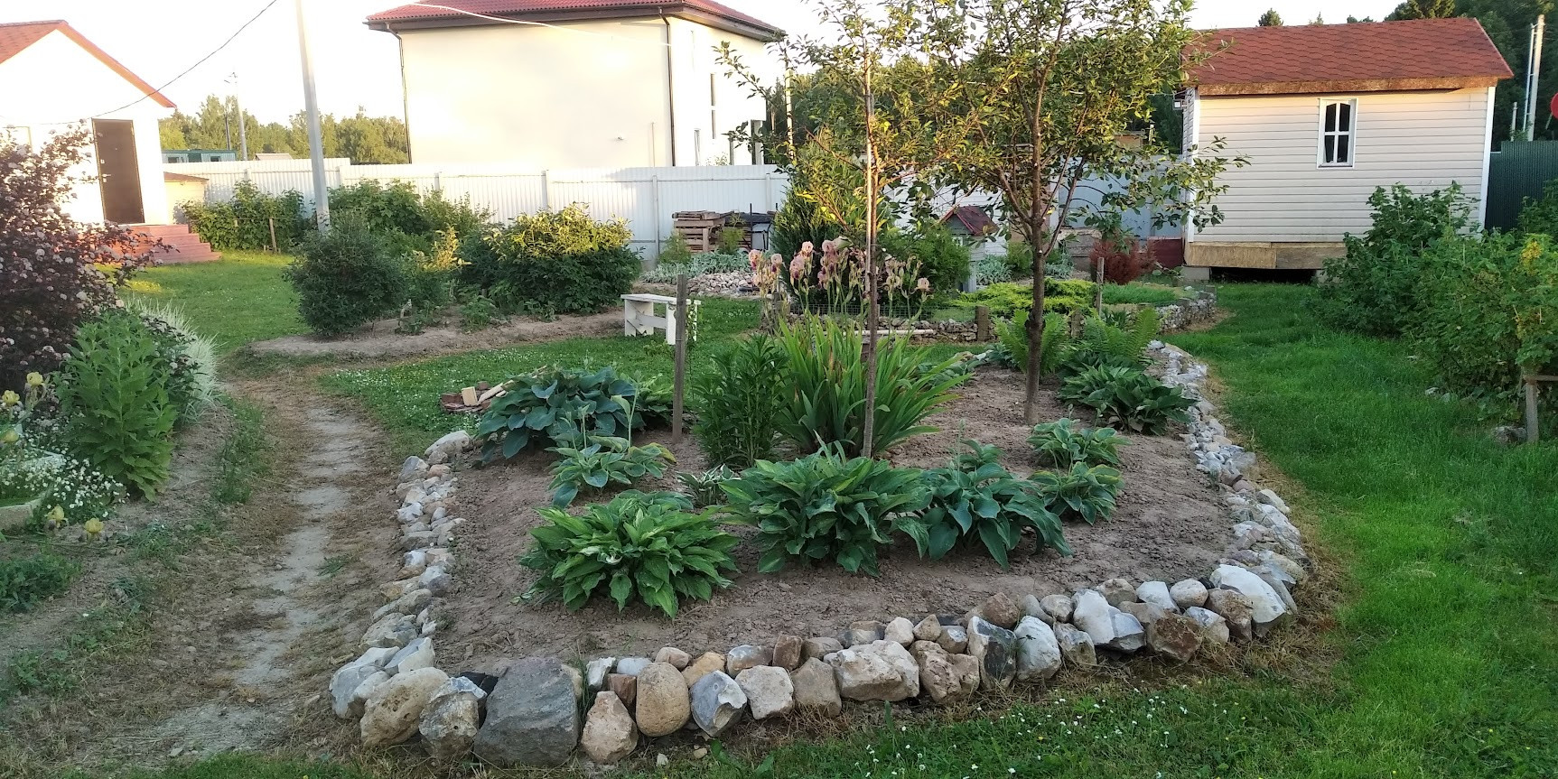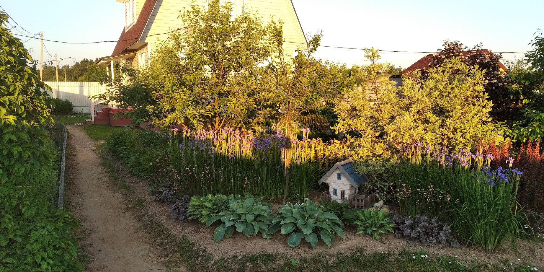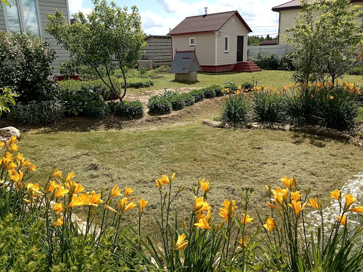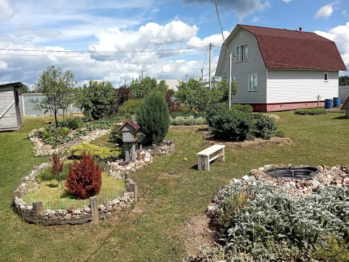 Забор - профлист 2 м. На участке также имеются: баня (20 кв.м), утепленная мастерская (16 кв.м), вольер для собаки (6 кв.м), два сарая (12 и 4 кв.м), дровник. На участке плодовые деревья и кустарники (яблоня, груша, слива, вишня, черноплодная рябина, смородина, крыжовник, малина, ежевика, большая клумба с клубникой), а также декоративные кустарники и многолетние цветы.