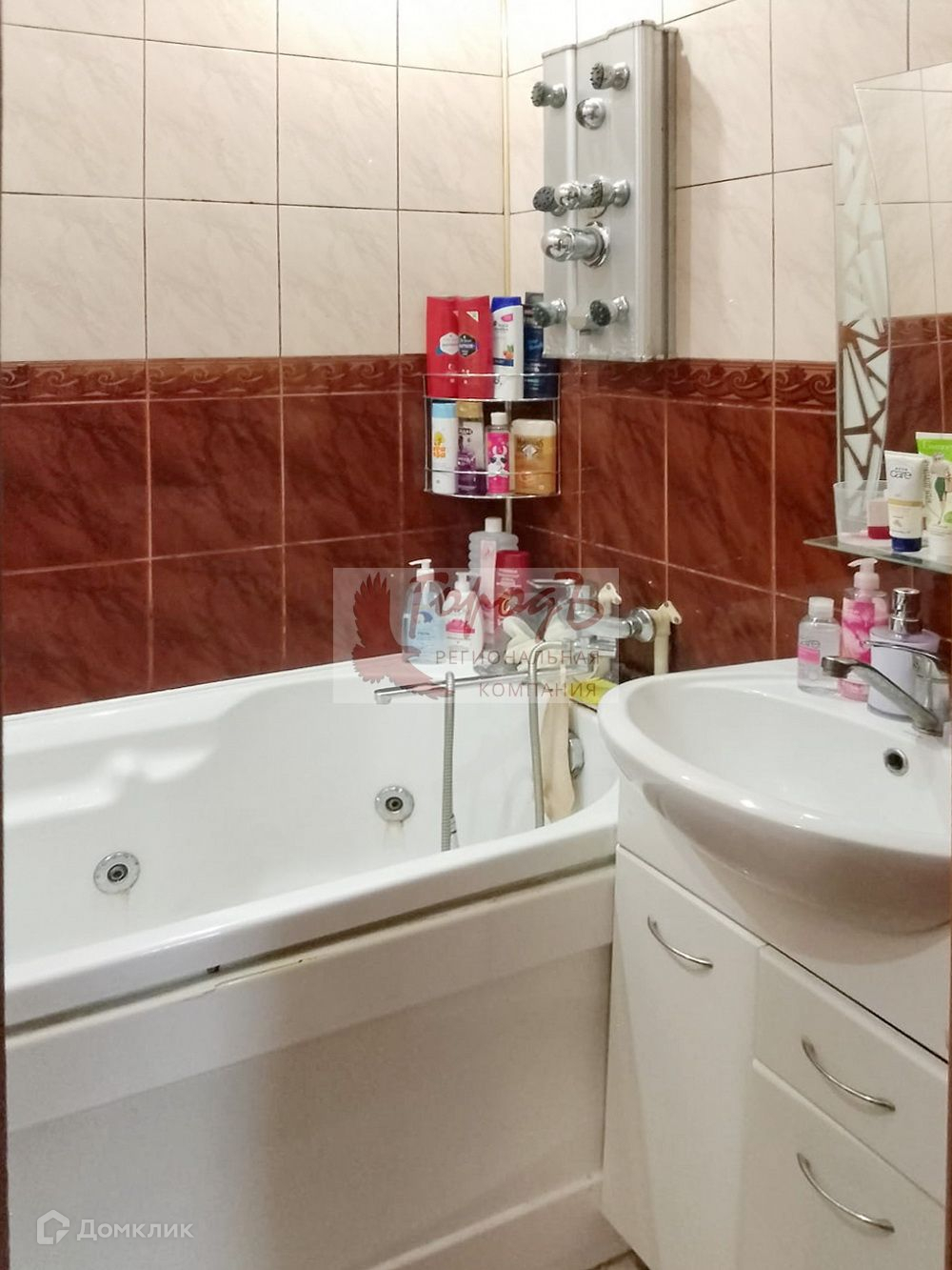 Ванная и санузел облицованны кафельной плиткой.