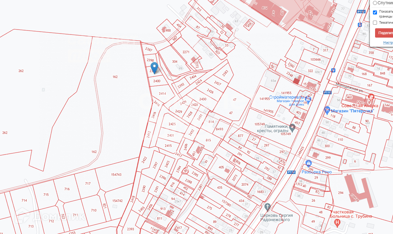 Участок примыкает к благоустроенному поселению Трубино, с развитой инфраструктурой. Транспортная доступность обеспечивается Фряновским шоссе, далее Ярославское или Щелковское шоссе. От МКАД 30км. До ЦКАД - 6км.