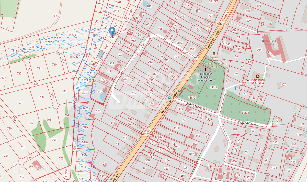 Участок примыкает к благоустроенному поселению Трубино, с развитой инфраструктурой. Транспортная доступность обеспечивается Фряновским шоссе, далее Ярославское или Щелковское шоссе. От МКАД 30км. До ЦКАД - 6км.