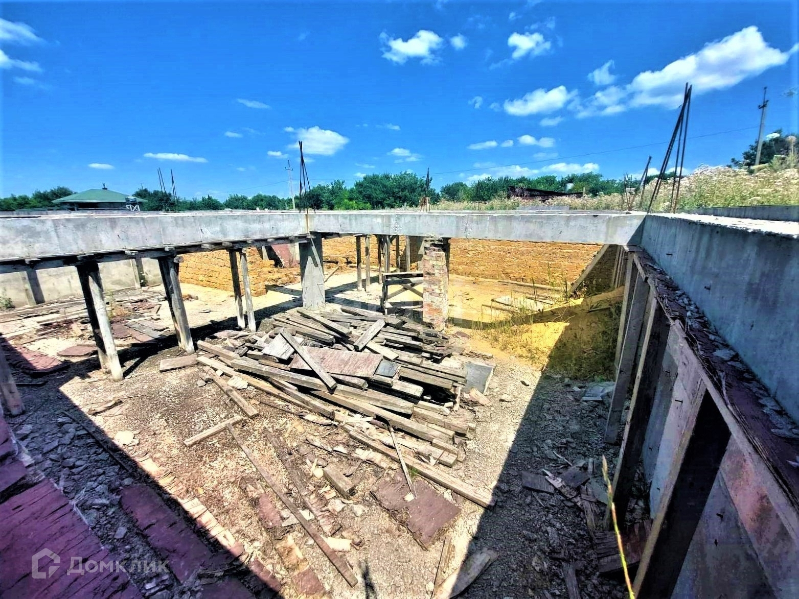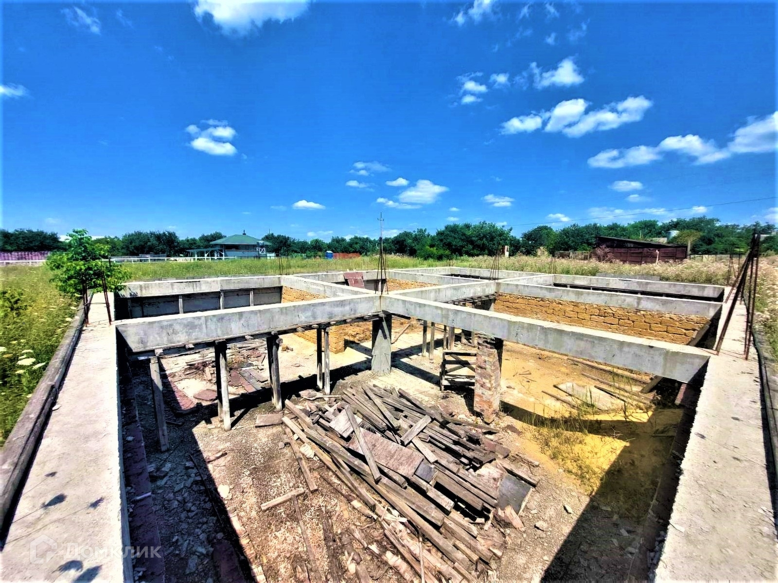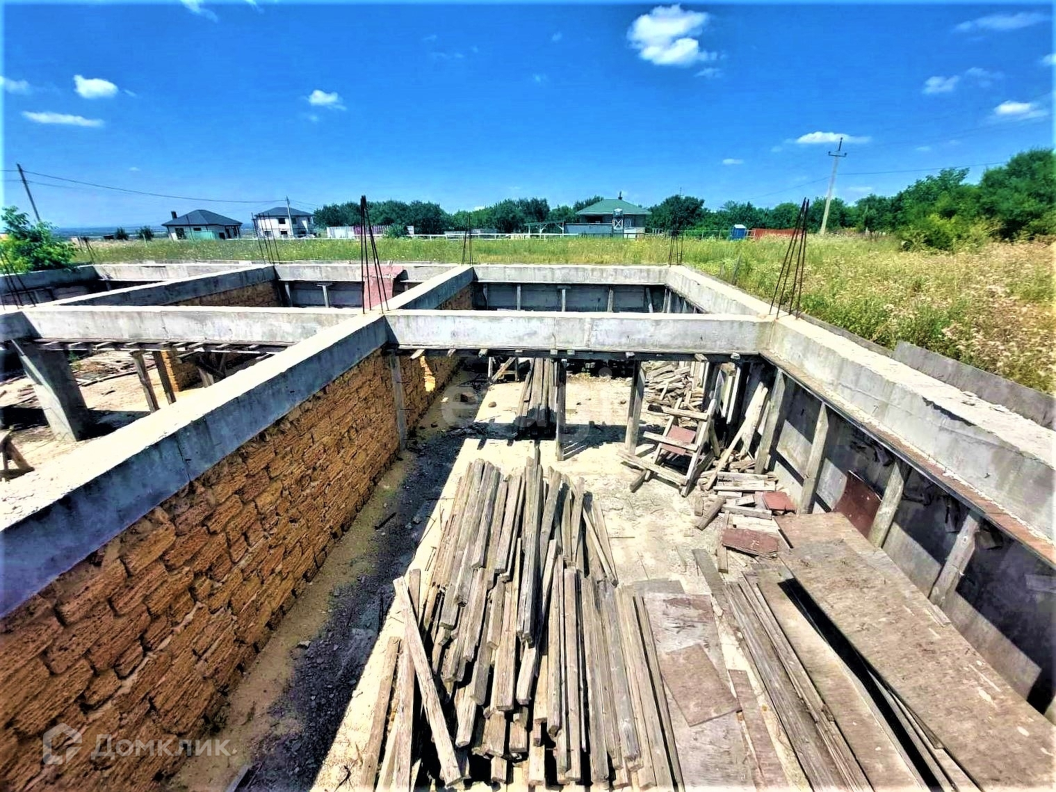 Участок ИЖС, ровный, правильной прямоугольной формы. На участке выведен фундамент 10*10, зашита арматура 14мм, высота 60 см/120 см в связи с перепадом местности.