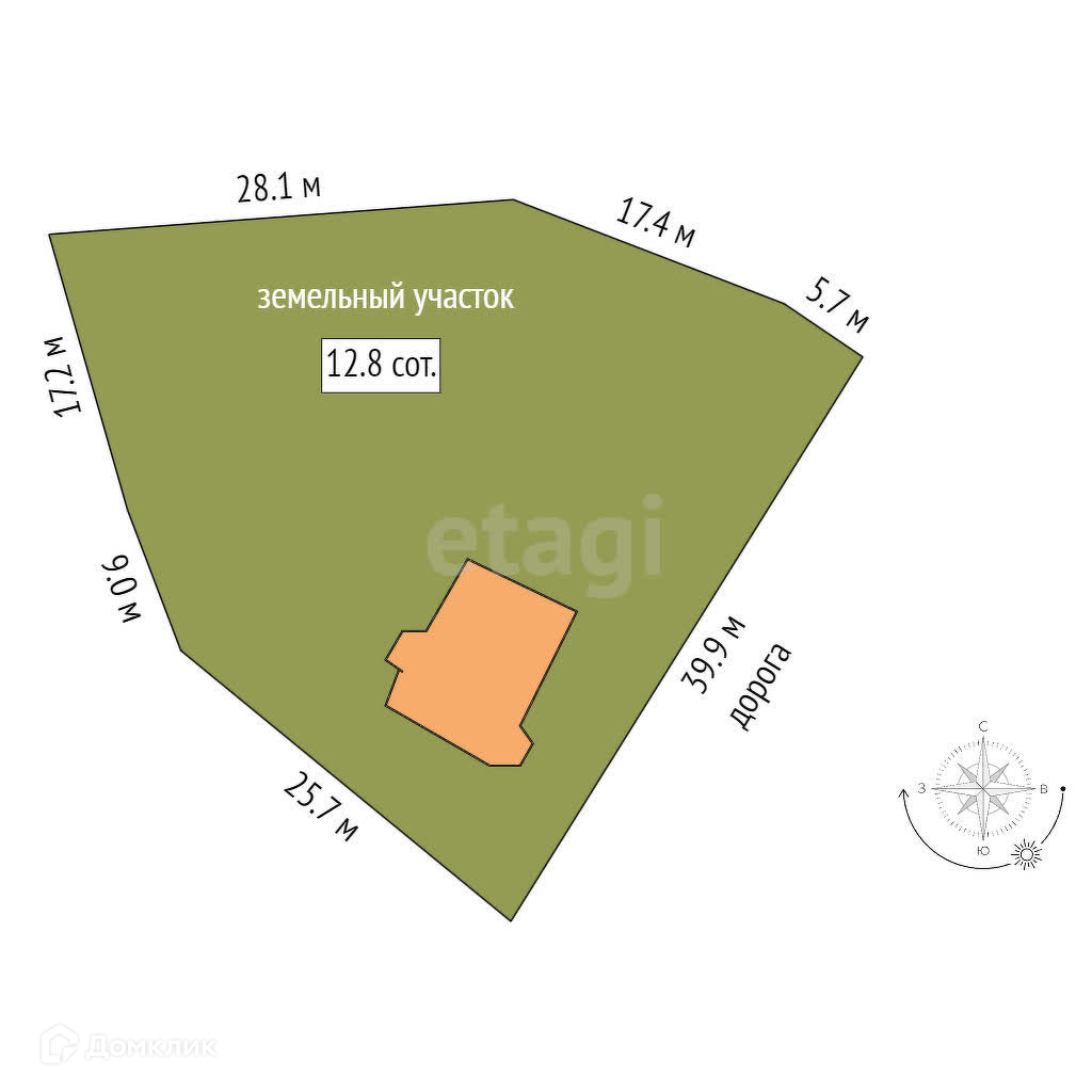 Площадь участка 12.8 сот.