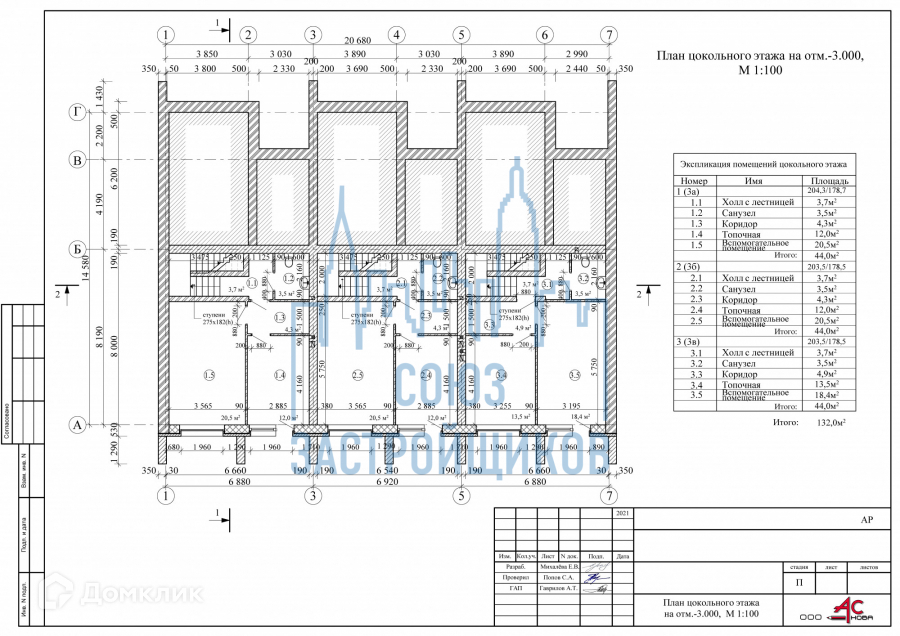 3 этажа : ---цокольный 44 кв м :хол с лестницей 3,7 квм