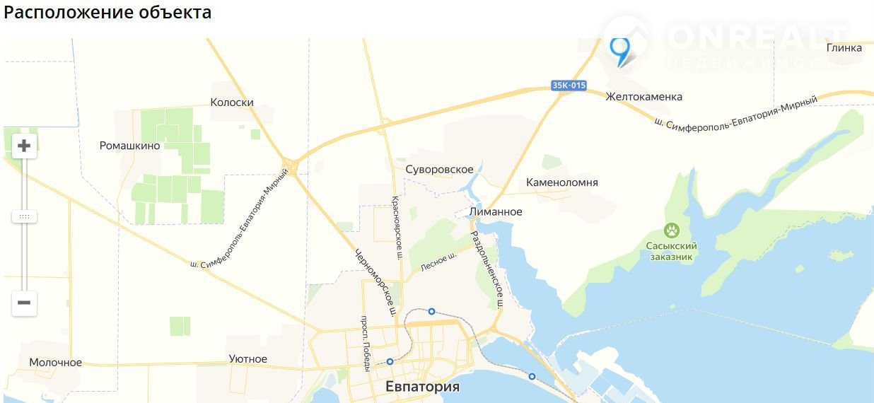 До бирюзовых песочных пляжей Евпатории – 15 минут, до пгт. Мирный 30 минут, до аэропорта в г. Симферополь – 40 минут.