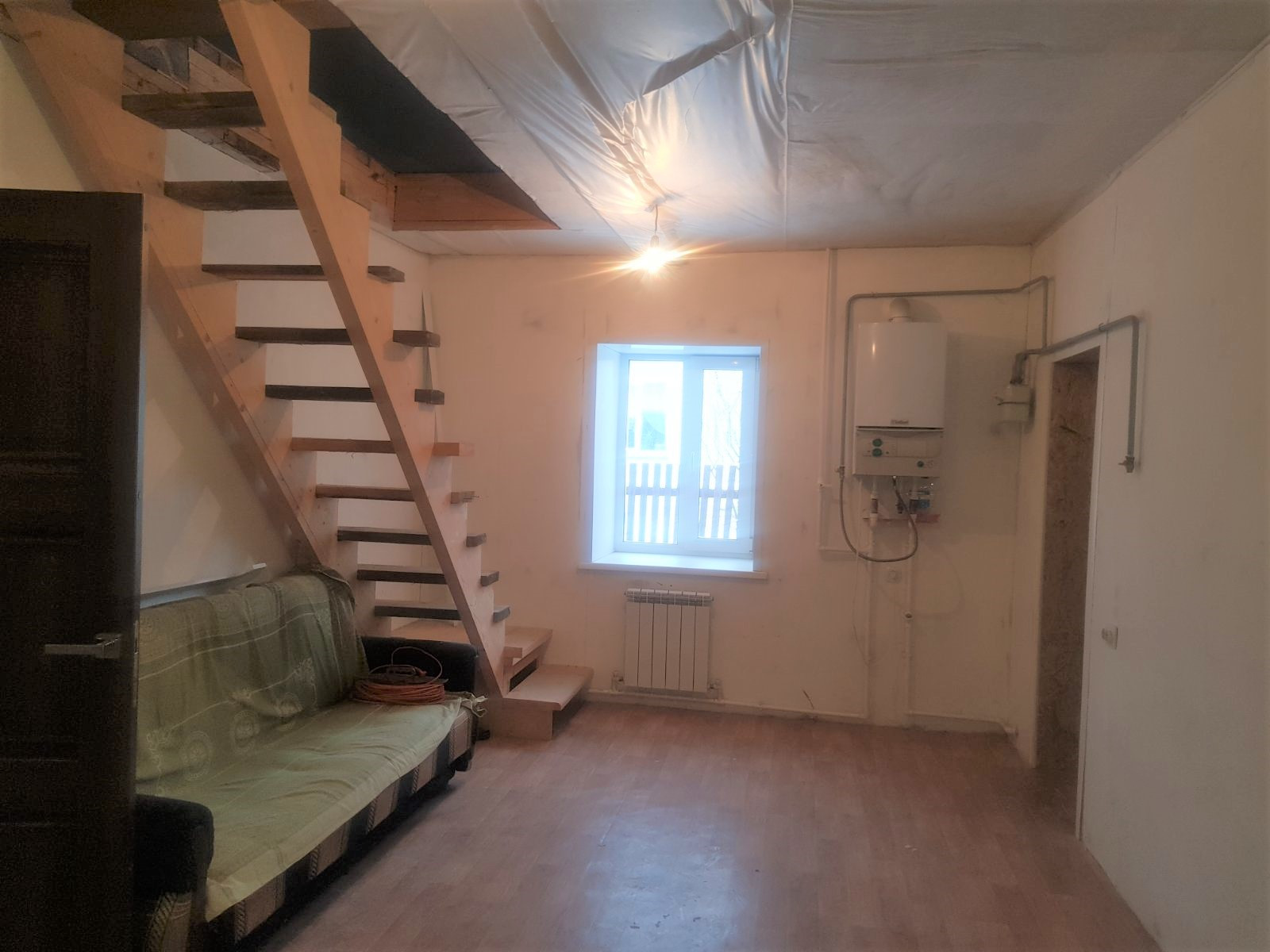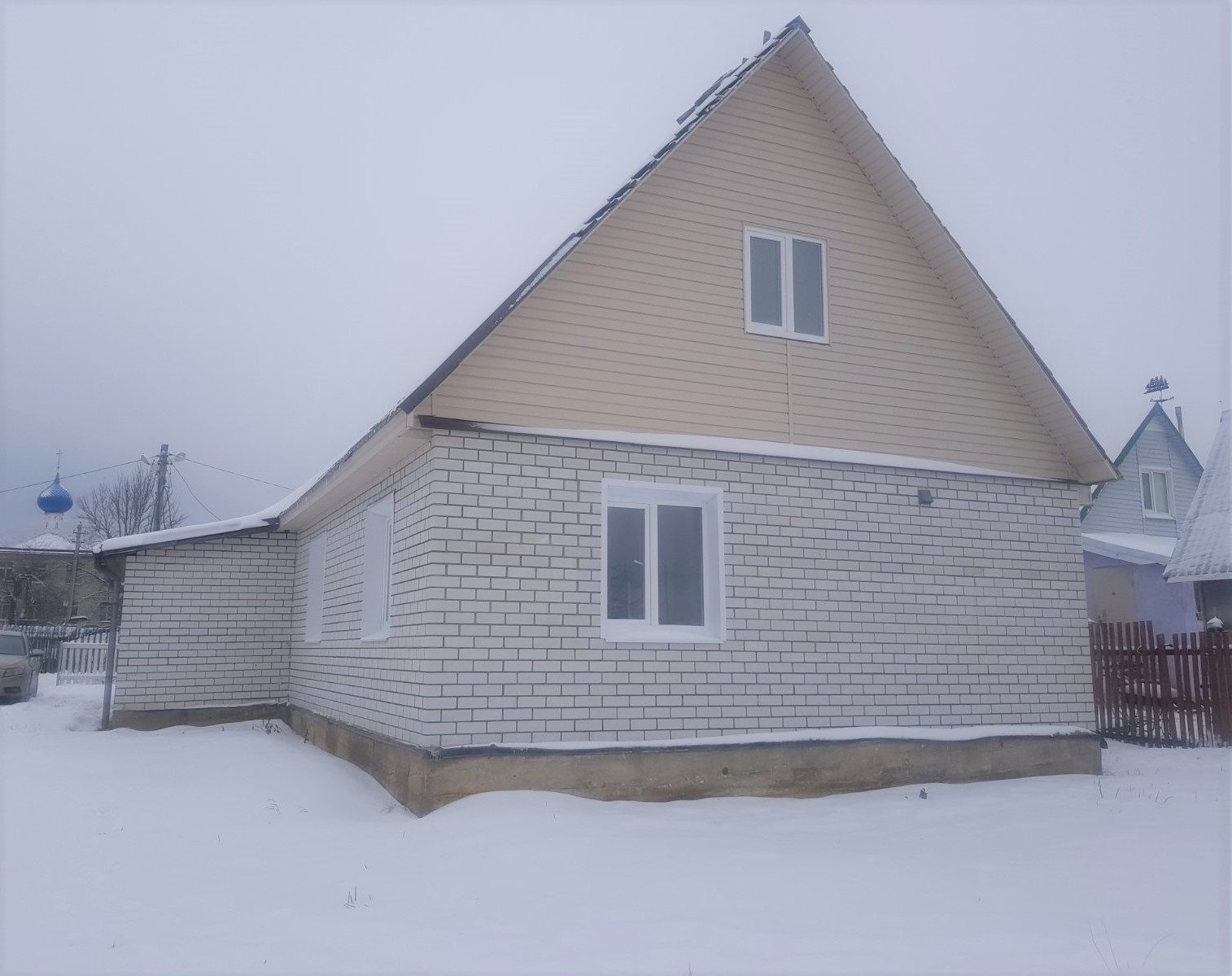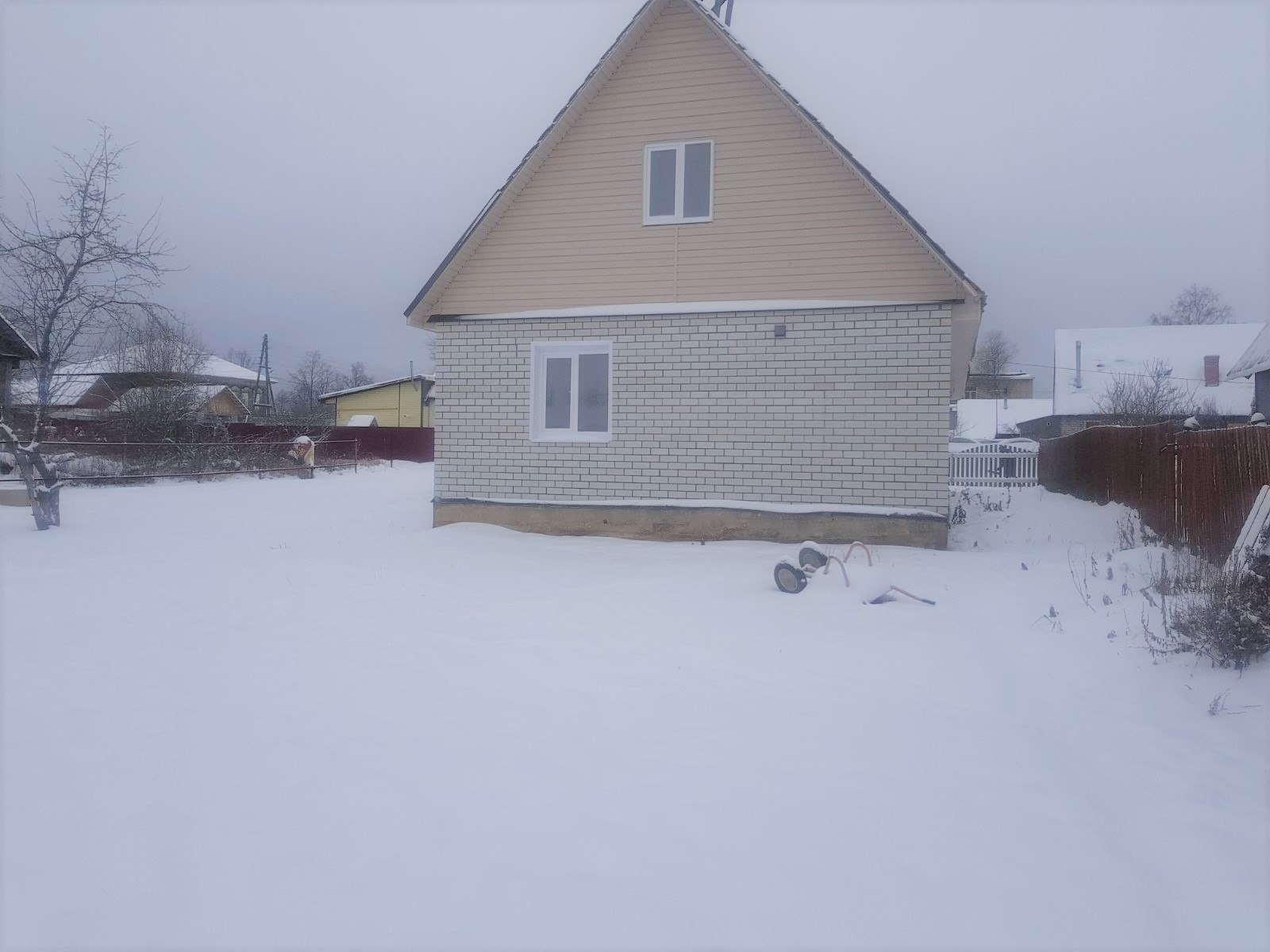 В доме на первом этаже кухня- гостиная, 2 жилые комнаты, с/у совмещен, кладовка, вместительная прихожая (возможна перепланировка).