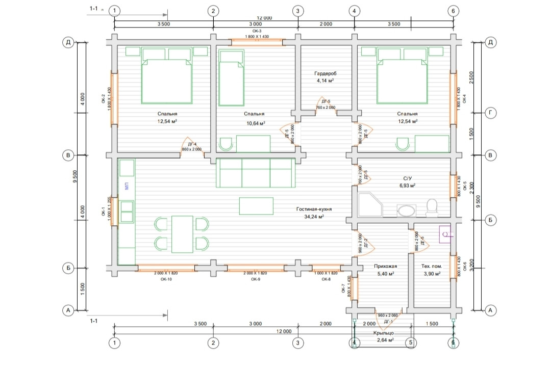 Высота потолков 4.5 самая высокая точка, 3м самая низкая. Планировка удачная-всё есть для удобства - 3 квадратные спальни, гардеробная, большая ванная, котельная, прихожая и кухня-гостиная. В доме можно просто покрасить стены и жить, отделки не требуется - это брус! Потолки отделаны имитацией бруса 16см.