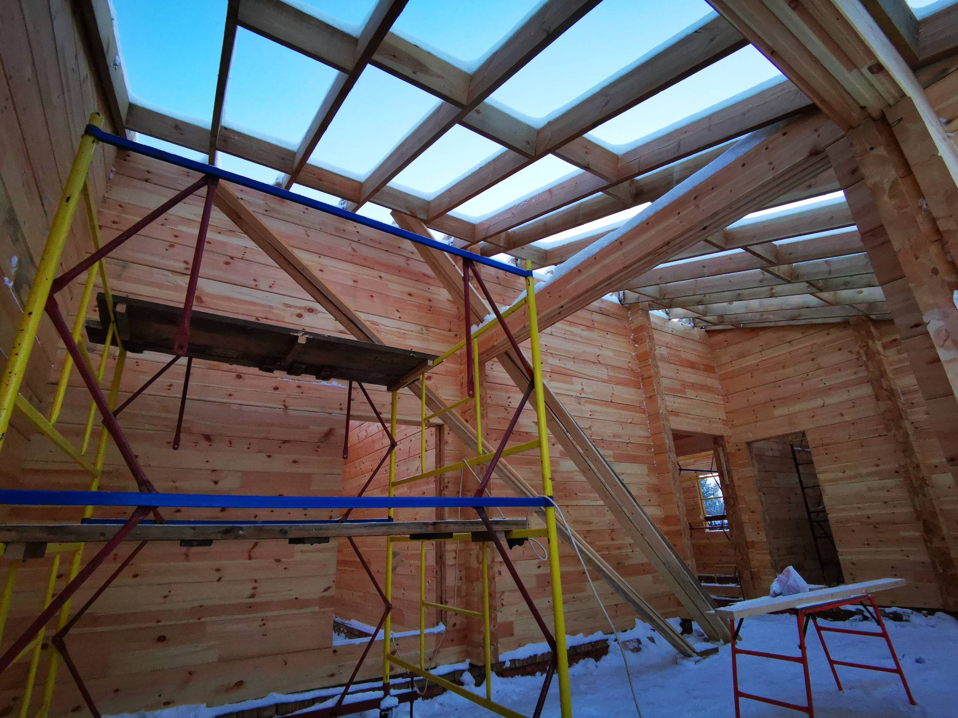 Клеёный Брус 270*200 из северного леса, стянут на Пружинный узел СИЛА TEDWOOD (тедвуд)-дом практически не даст усадку, можно заезжать и жить. В доме уже стоят все перегородки из такого же бруса, шумоизоляция в доме будет идеальная.