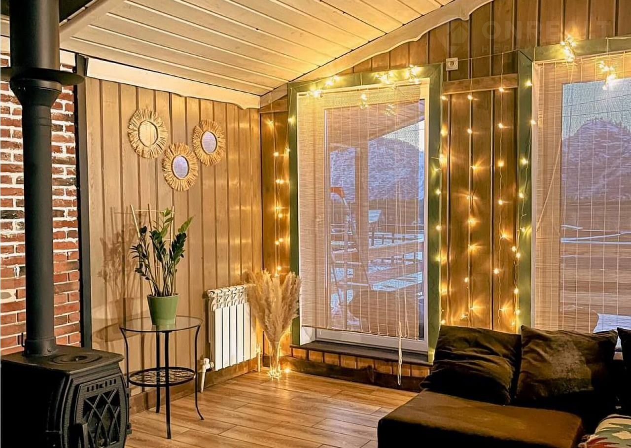 — Планирoвкa: 2 спальни, просторная кухня-гостиная с чугунной печью-камином, которая обеспечит тепло даже в холодные зимы.