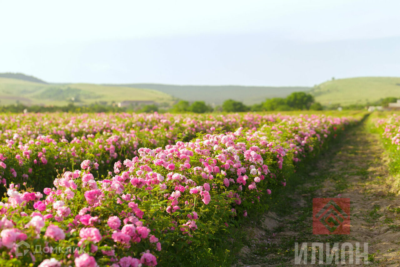 Прекрасный участок на окраине поселка, рядом с лесом и видом на рассаду крымской розы . С другой стороны виды на лавандовые поля . Удивительное место с  ароматами и видовым местом . земля плодородная .подходит под любой вид сада . все коммуникации. В поселке свои школа и сад .