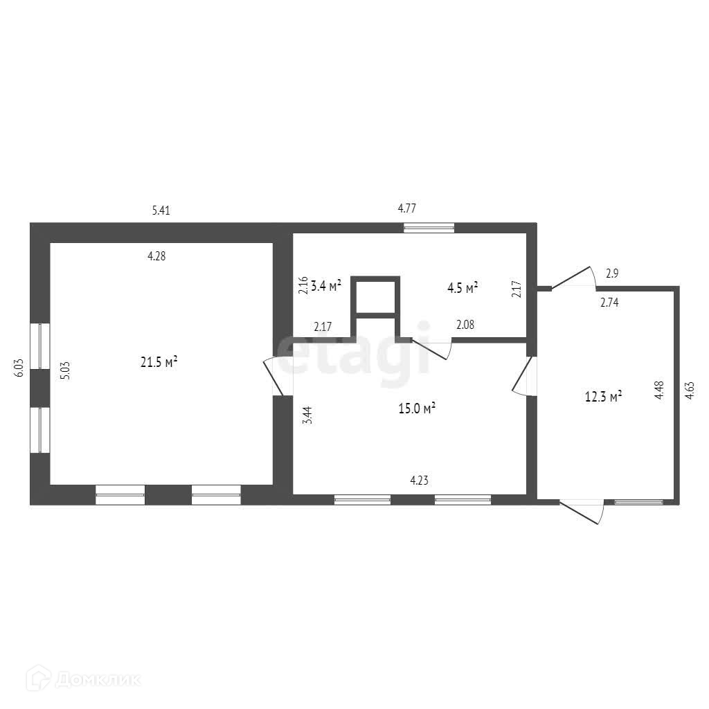 Общая площадь 60.9 м2