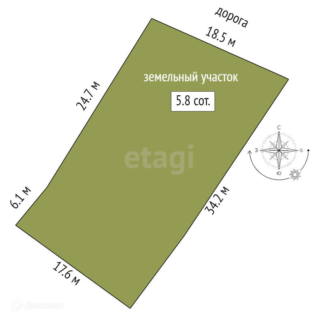 Площадь участка 5.8 сот.