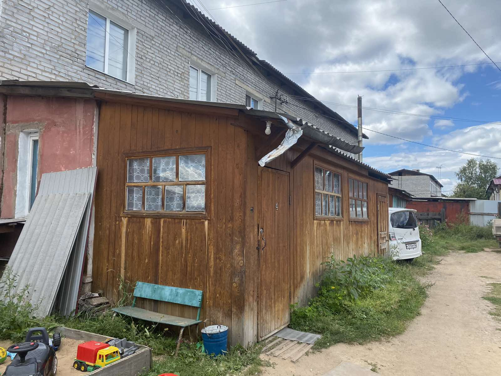 2-й этаж: 3 комнаты (раздельные), ванная. Квартира неугловая, центральные отопление и вода, 2 лоджии. Во дворе гараж (шлакоблок) на 2 автомобиля, баня 6Х8, насаждения.