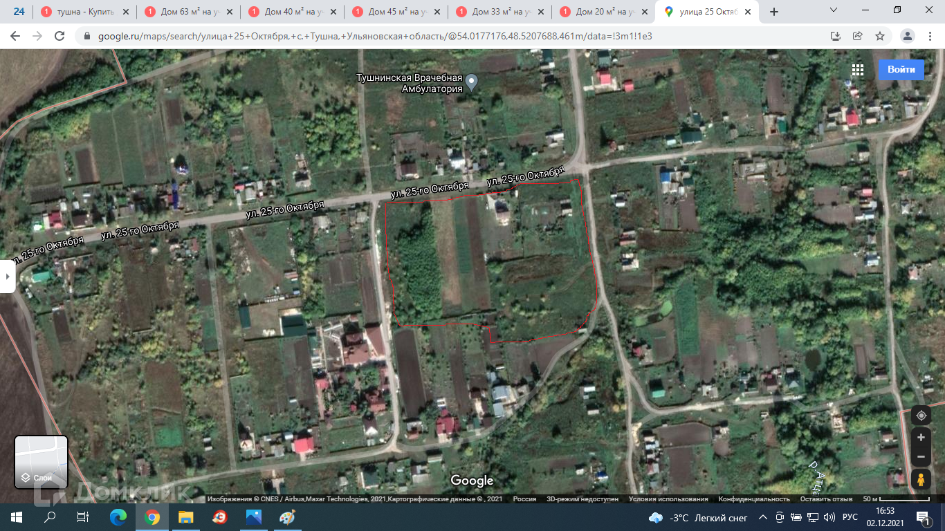26 соток. В непосредственной близости находятся магазины, школа, дет. сад. Из окон вид на Тушнинские горы, реку, лес, святой источник.