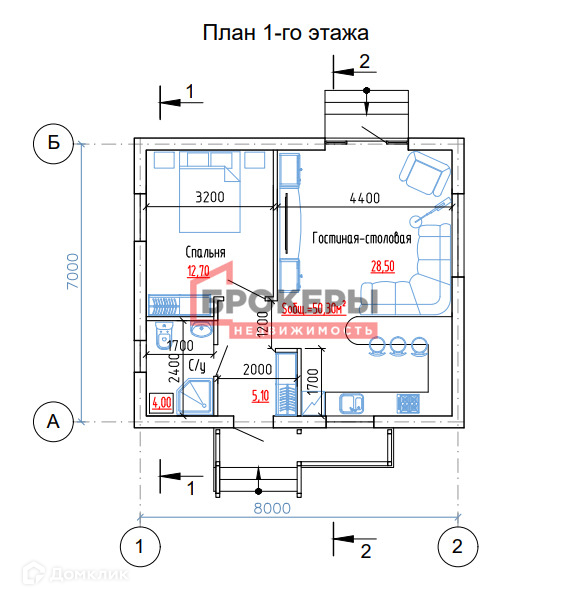 Общая площадь 50 м2