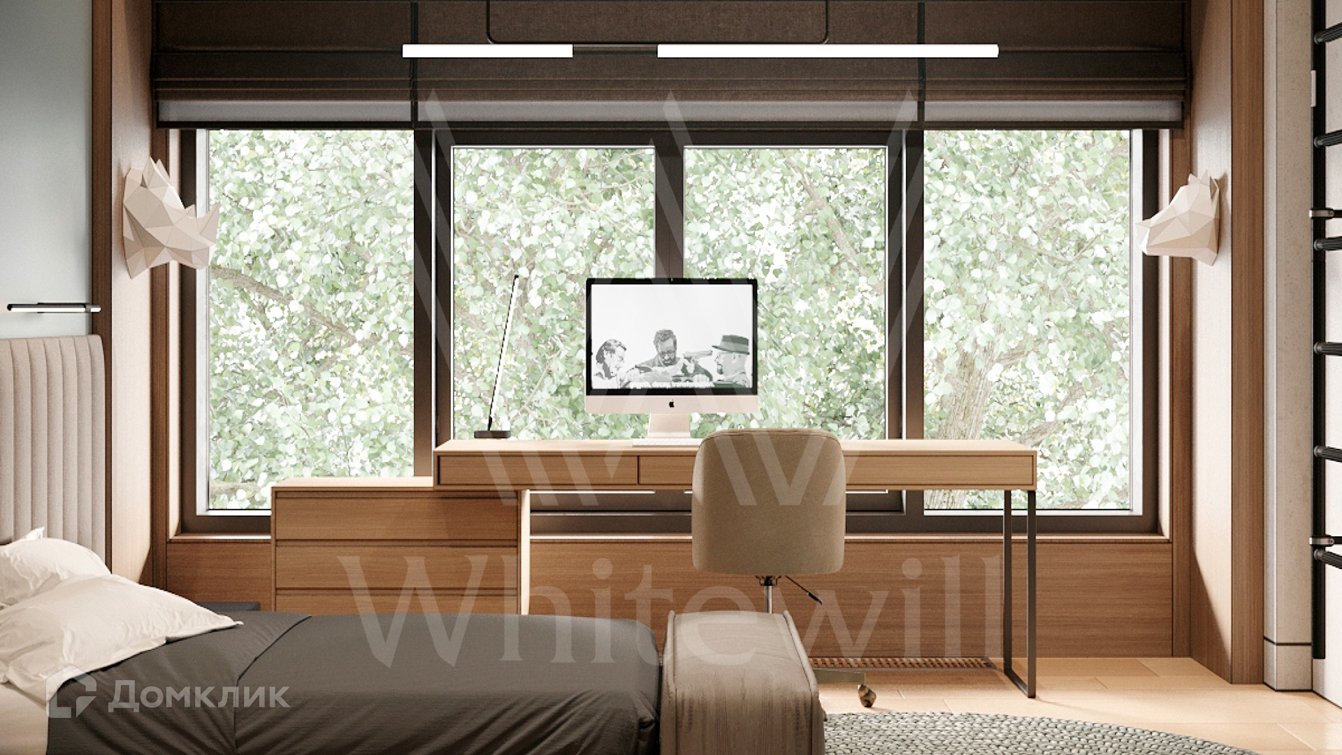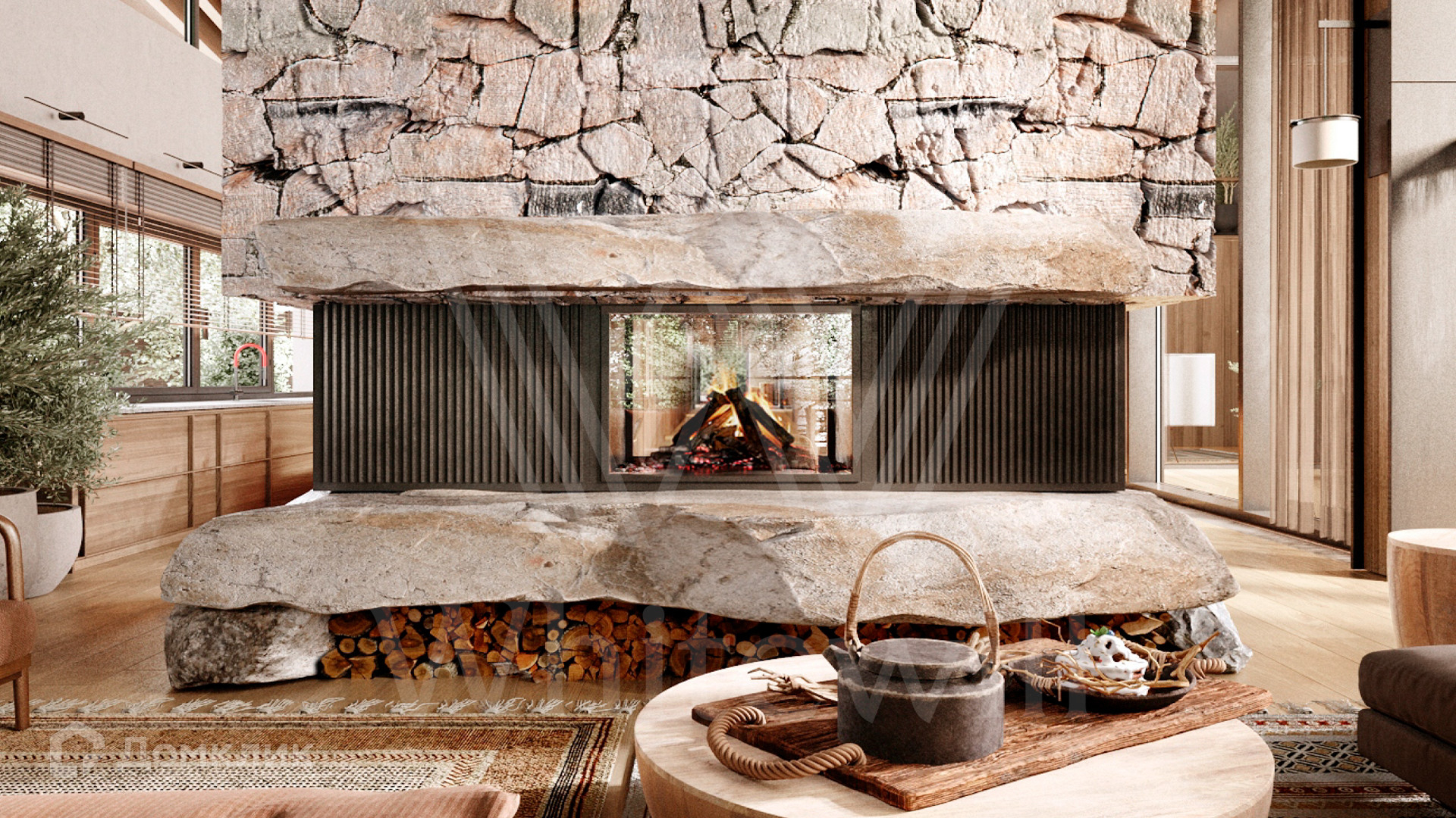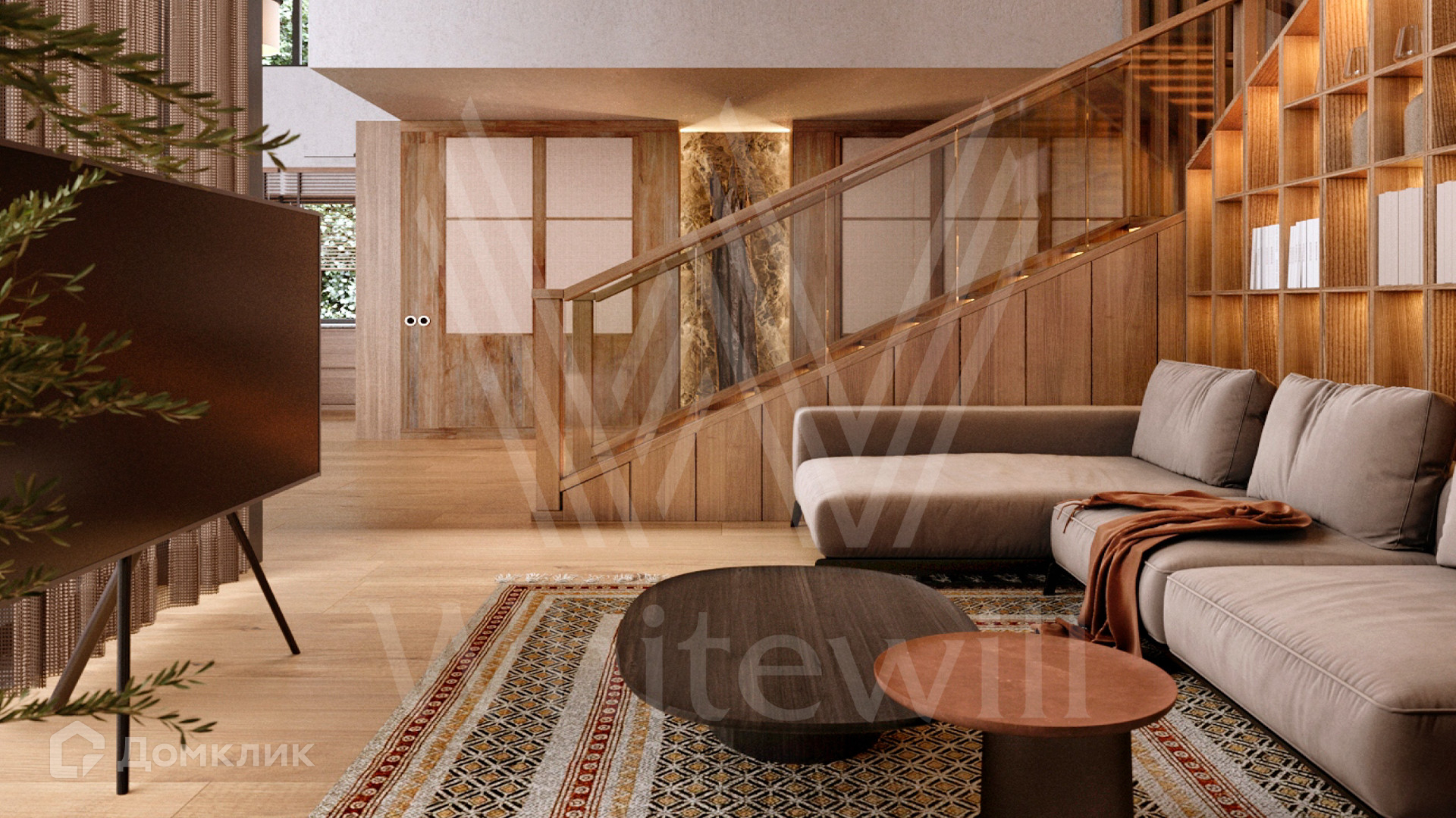 ID 12 649. Уборы. Загородный дом без отделки площадью 700 м² расположен на полевом участке 25 соток рядом с водоемом. Архитектура с плавными линиями гармонично вписывается в природный ландшафт. Фасад облицован деревом и клинкерной плиткой. Из панорамных окон открывается вид на водную гладь и сосновый лес. В коттедже спланировали 4 спальни, гостиную с камином и вторым светом, кухню-столовую, кабинет, винный погреб, спортзал и сауну. Предусмотрены гараж на 2 машины и комната персонала. На участке можно высадить деревья и кустарники, оборудовать бассейн и зоны отдыха.