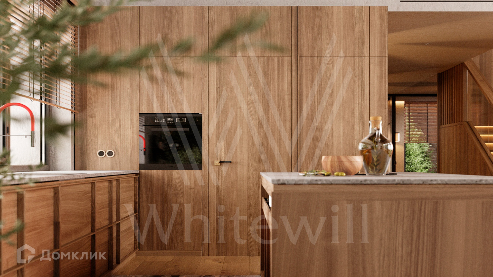 1-й уровень: гостиная, кухня-столовая, холл, котельная, санузел, гардеробная, кладовая, гараж, кабинет.