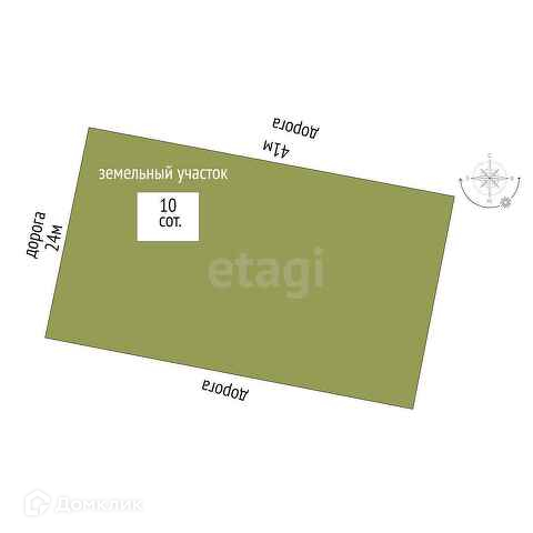 Земельный участок площадью 10 соток, ровный, прямоугольной формы 40м х 21м, разрешенное использование: для ведения личного подсобного хозяйства.