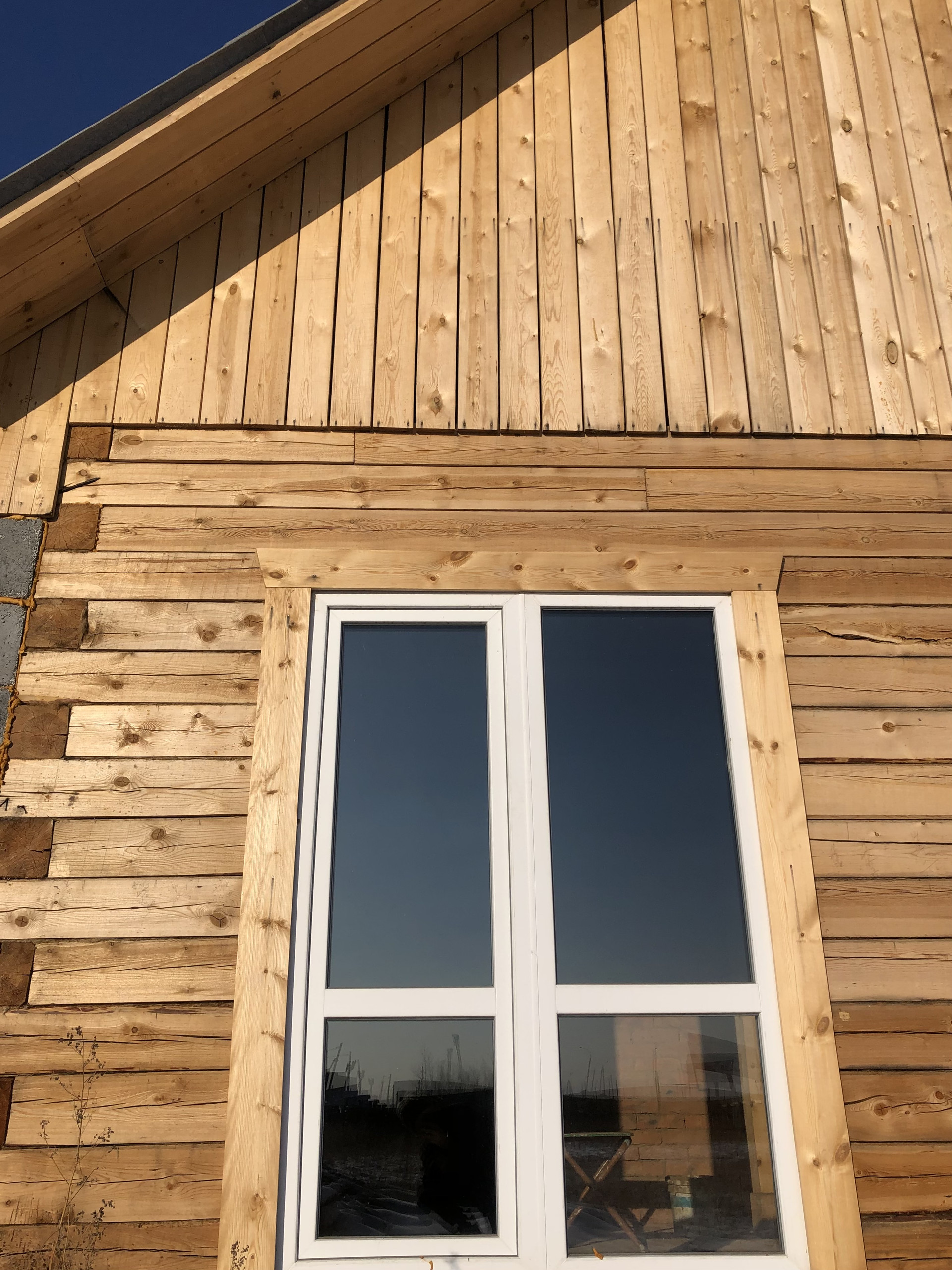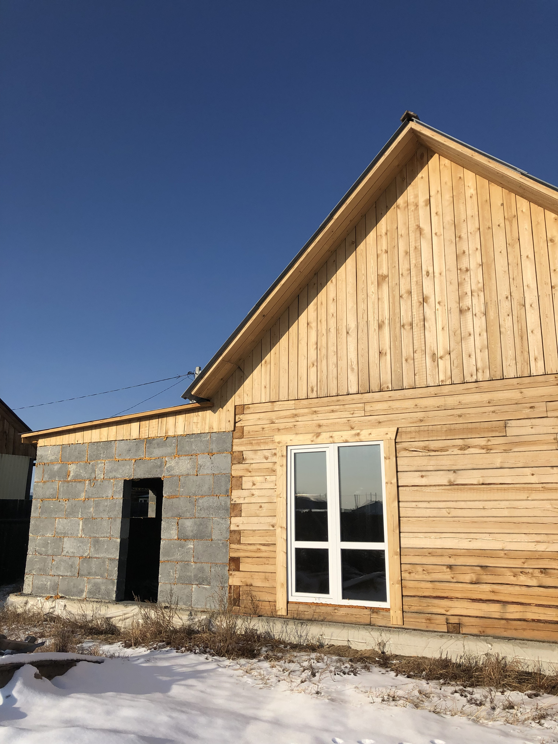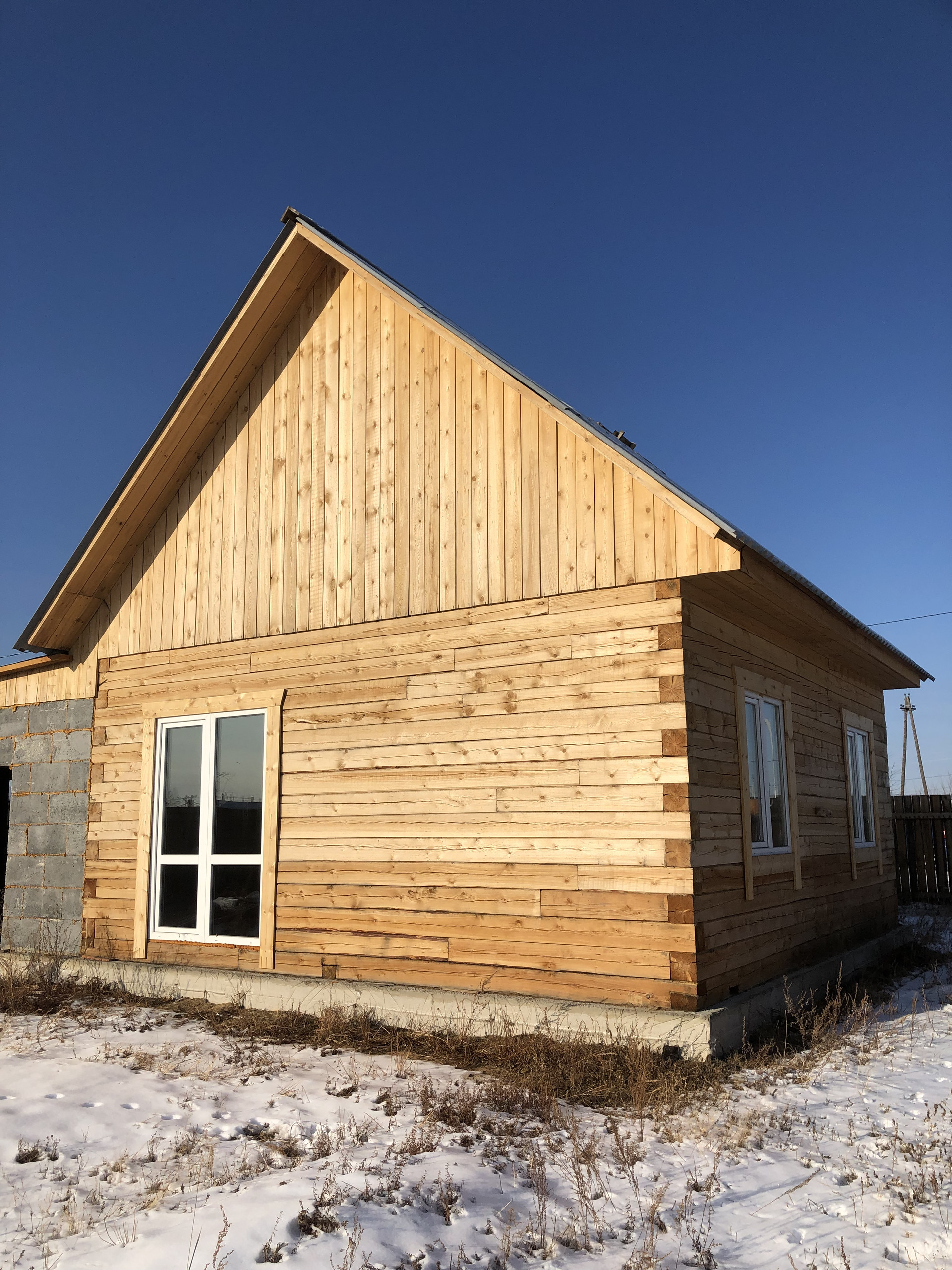 Дом отапливается печью-голландкой, два стандартных пластиковых окна, одно французское окно во внутренний двор. Входная дверь деревянная.