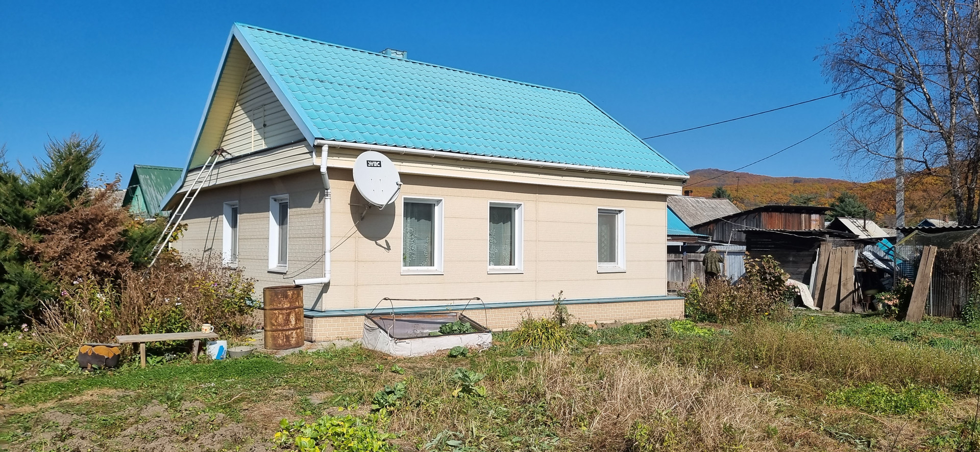 - Дом обшит сайдингом, крыша металлопрофиль. Забор металлопрофиль.